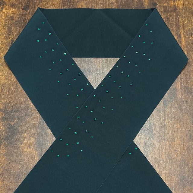 商品名:スワロフスキー付きカラー半衿(御召茶色) 状態:新品 素材:衿地 ポリエステル100% スワロフスキー サイズ:長さ 約115㎝ 幅 約16.5㎝ 色・質感:さらりとしたセミマッドの御召茶色(くすんだ緑みのある青色)地に 虫襖色(むしあお色:玉虫の翅のような暗い青緑色)のスワロフスキー社製のラインストーンが散りばめられたモダンで美しいカラー半衿です☺︎ ※半衿単品でのご紹介です。 着物、帯、その他小物は付属しておりません。ご注意下さいませ。 ※この製品は加工の性質上、汗や水分、強い摩擦などにより色落ちが生じる場合がございます。 お洗濯の際はドライクリーニングをお勧めいたします。