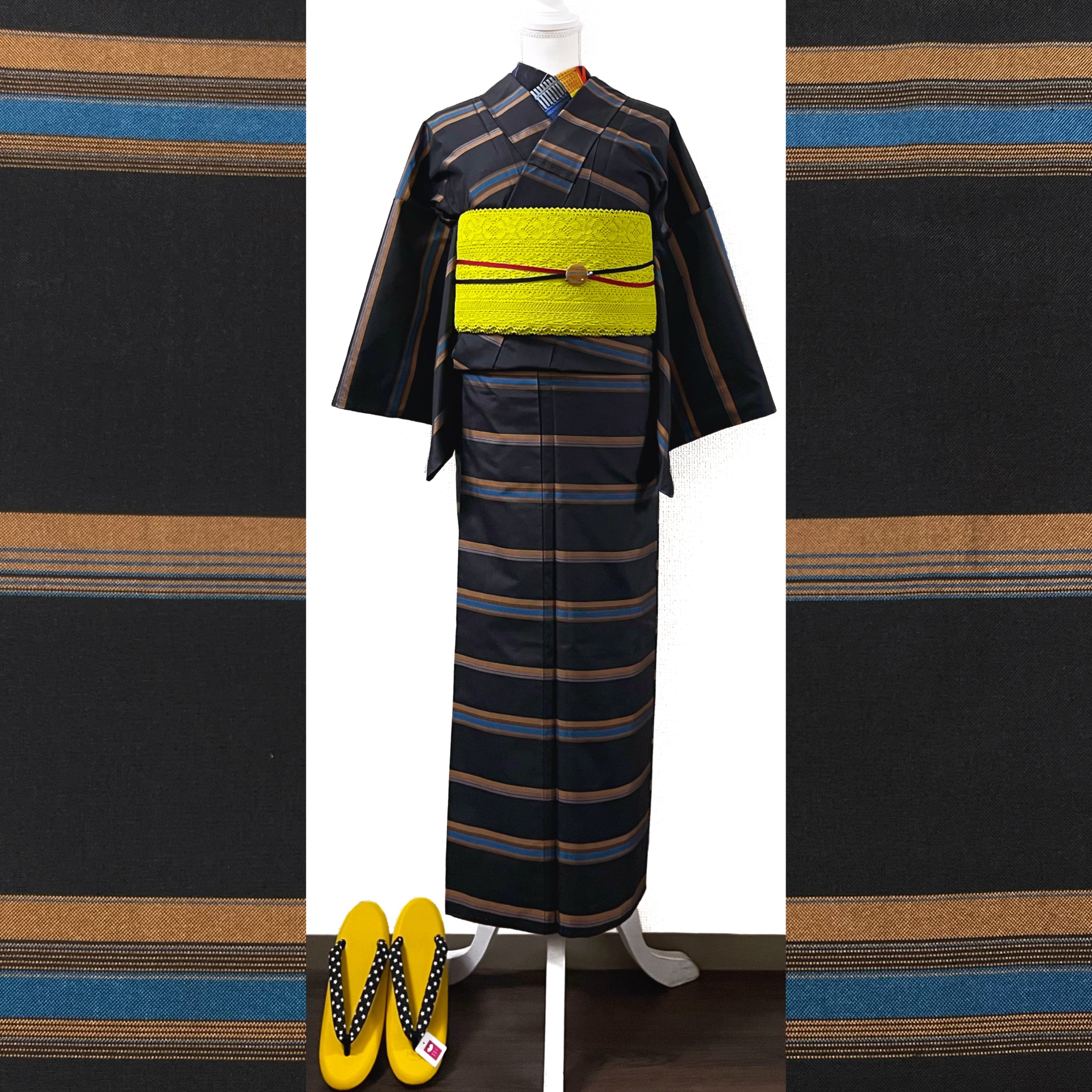 商品名:HARUキモノコモノ レモン色なフェイクレザーにボーダー柄のふかふか草履(Mサイズ)