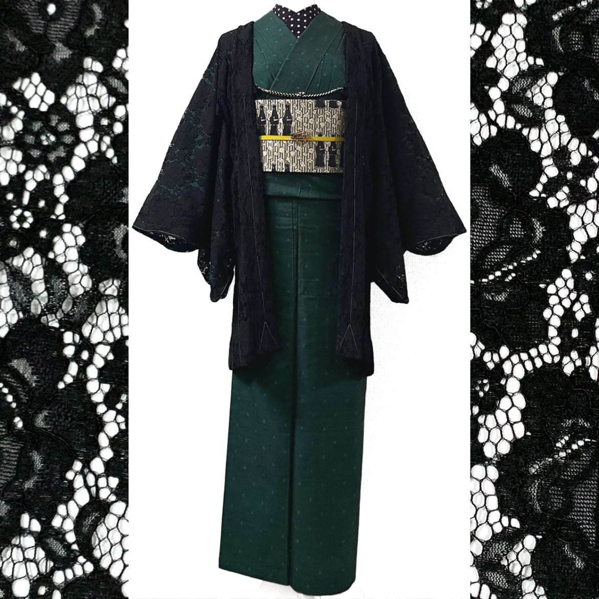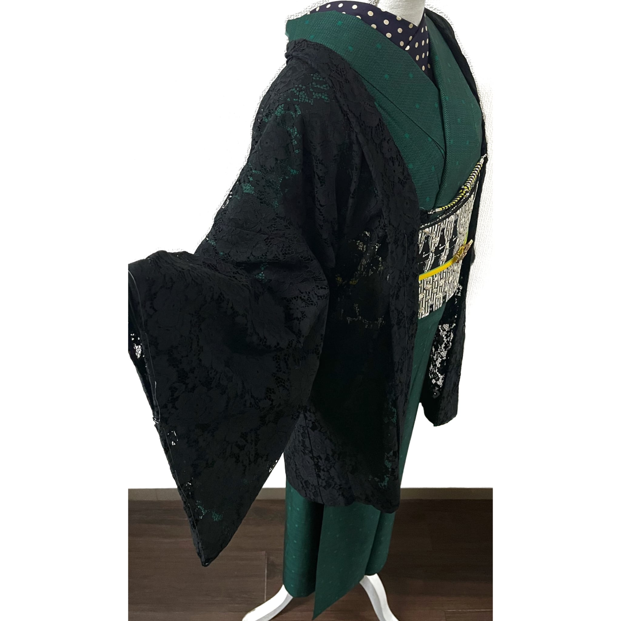 【新品】【特価】単衣仕立ての総レース羽織り(ブラック)
