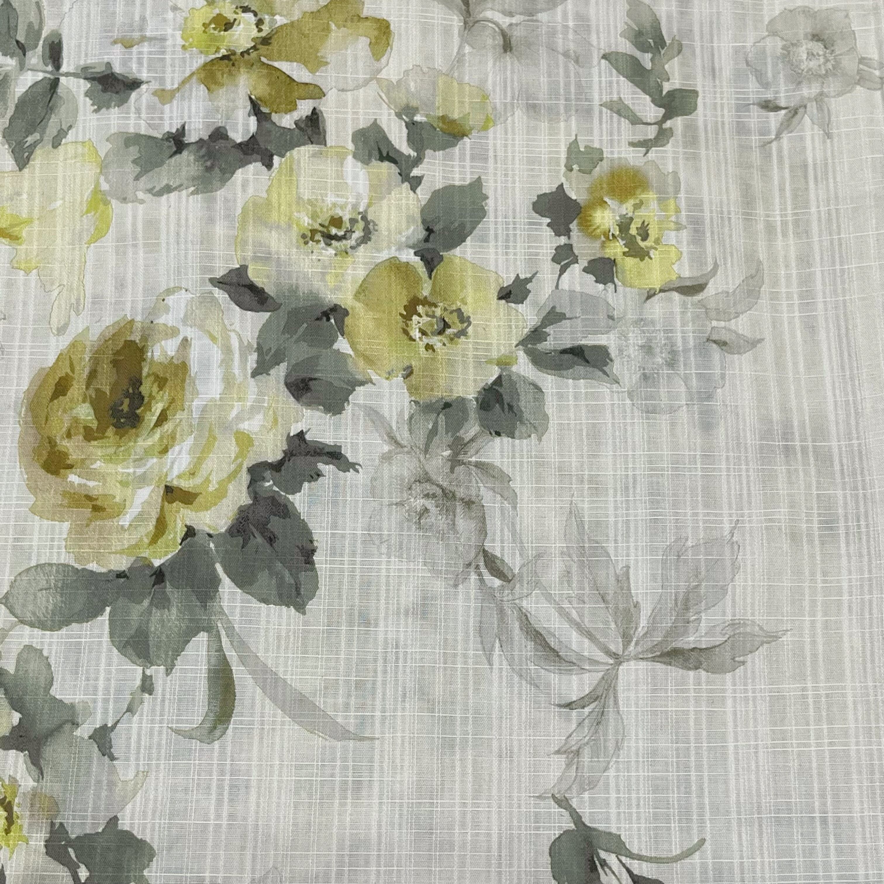【新品】 格子織柄入り 水彩風薔薇・百合模様の綿浴衣(オフホワイト)