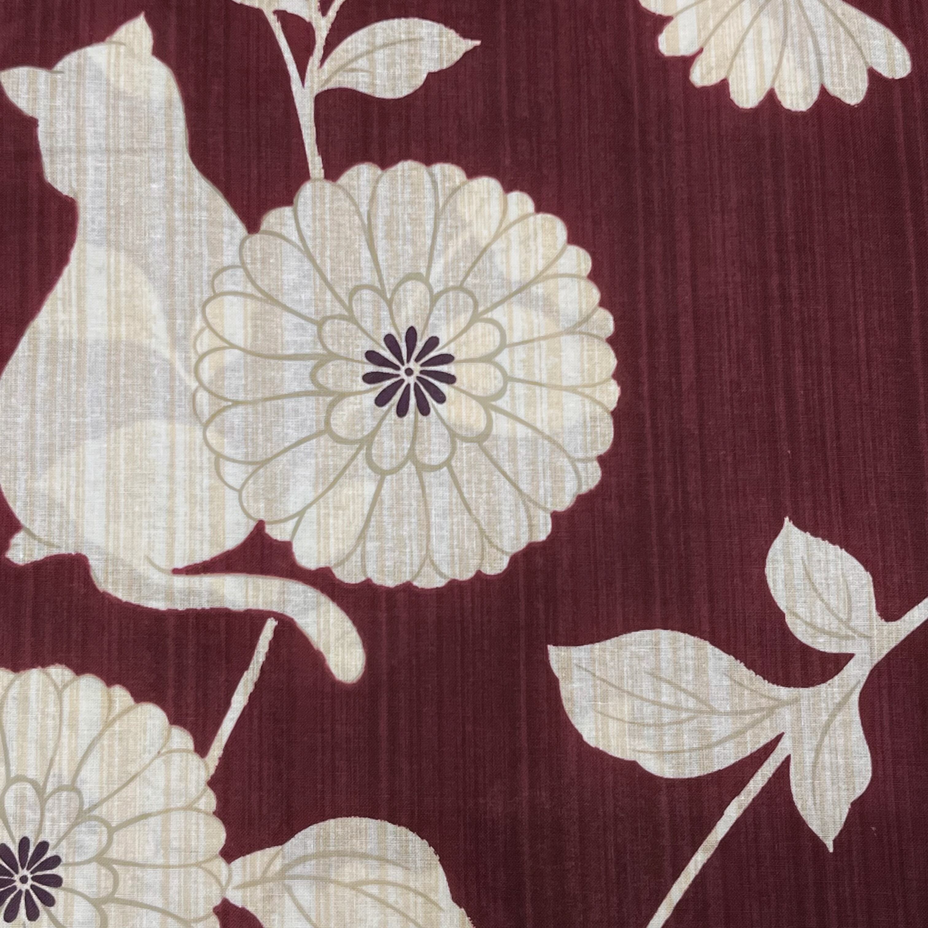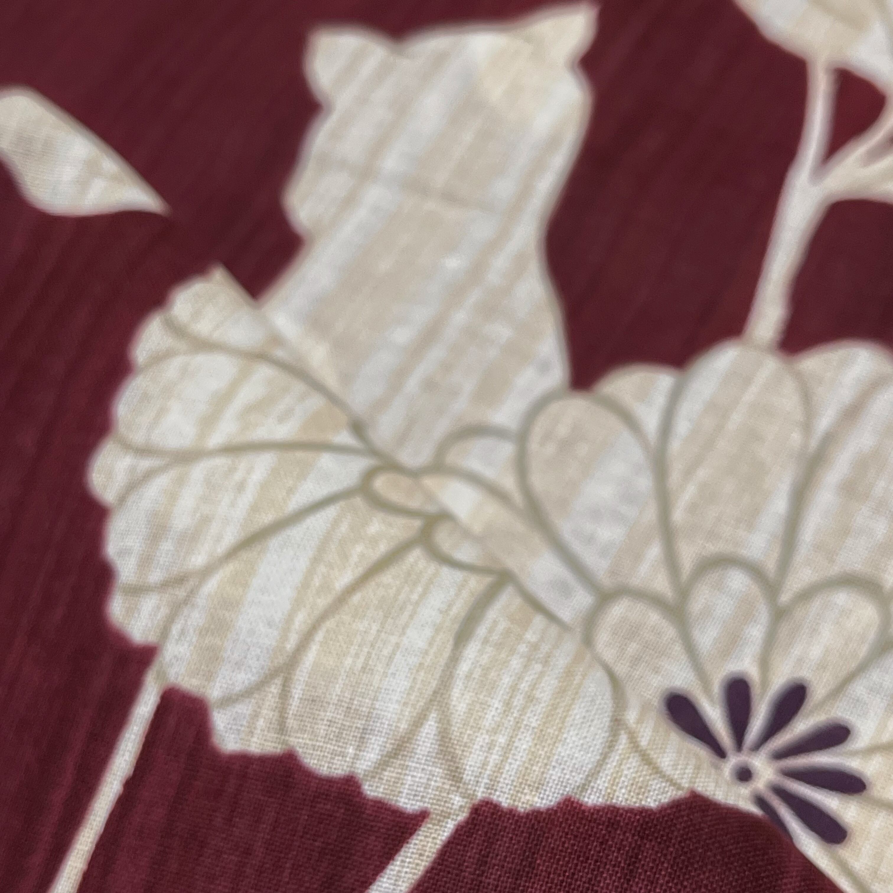 商品名:「新品 ワインレッドに猫と花模様の綿浴衣」