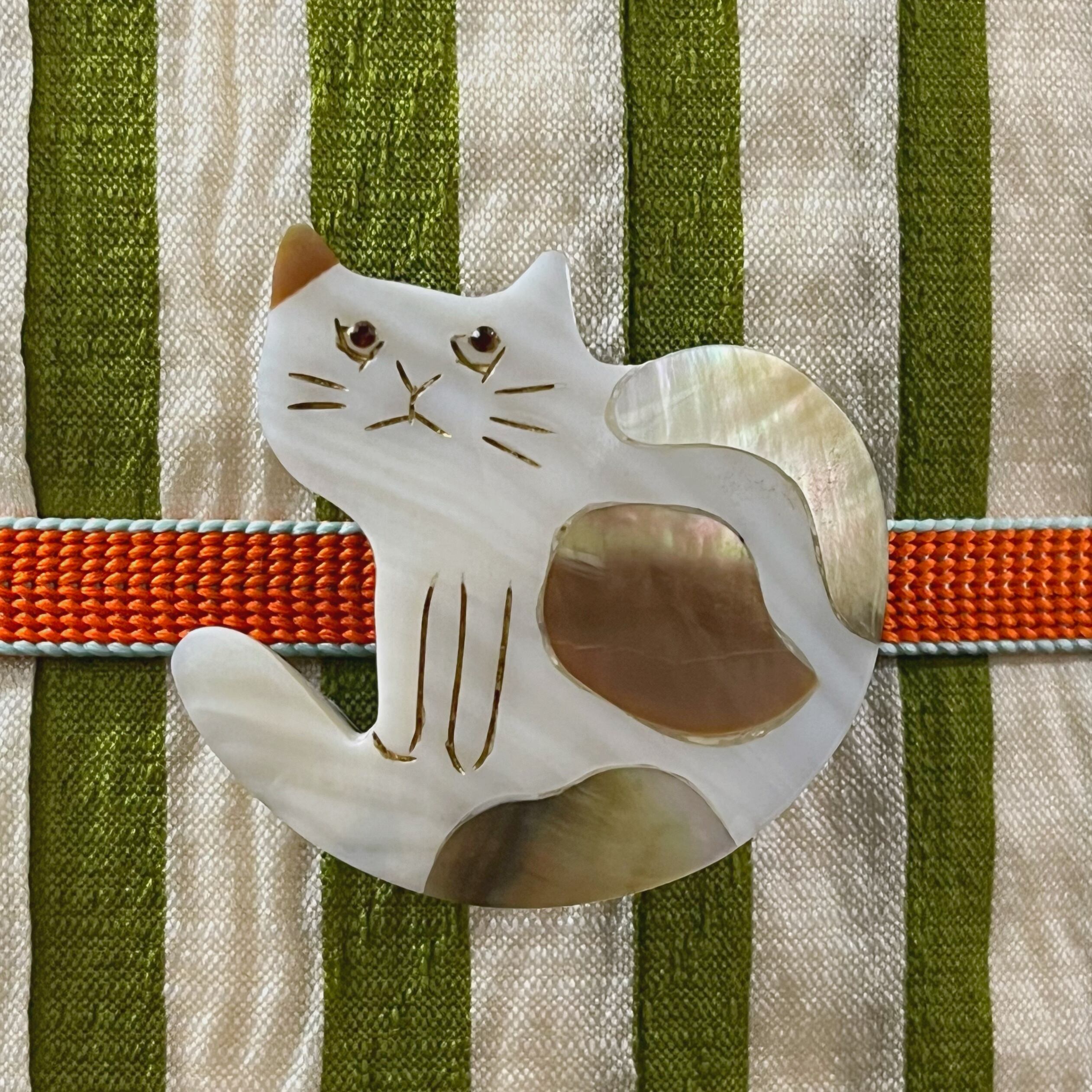 【新品】天然貝帯留め〜三毛猫〜