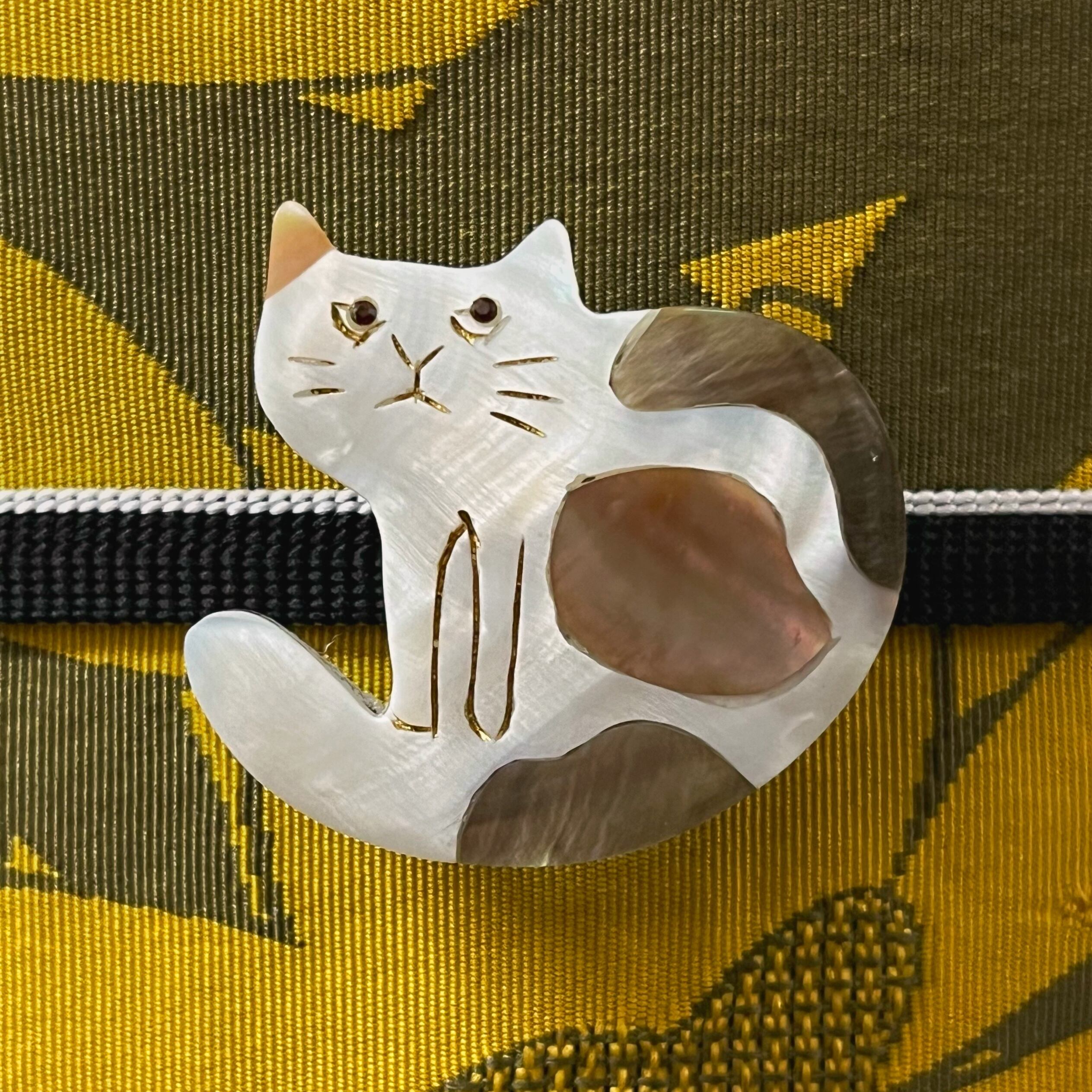 上目遣いがキュートな三毛猫デザインの帯留めです☺︎