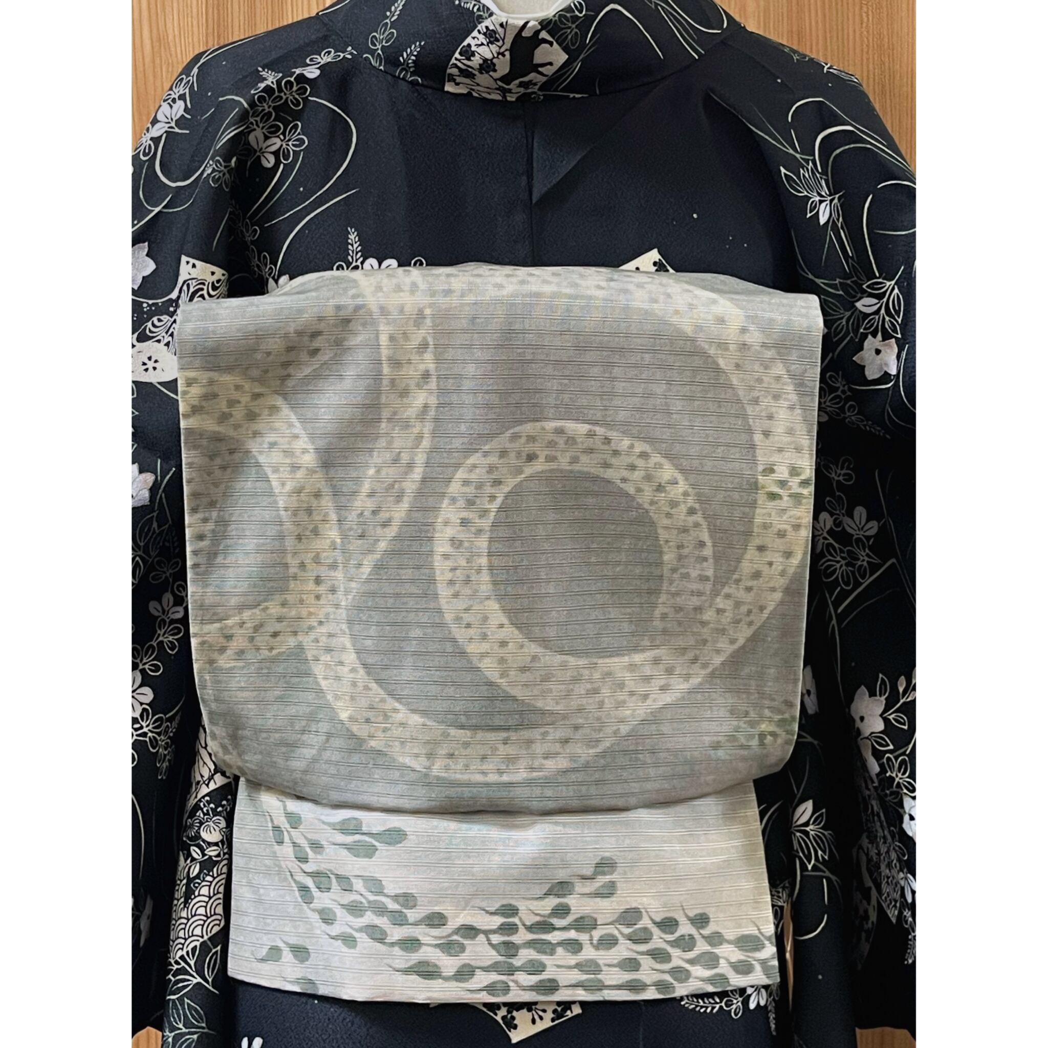 カエルの卵とおたまじゃくし柄デザインの帯芯のない柔らかなお仕立ての