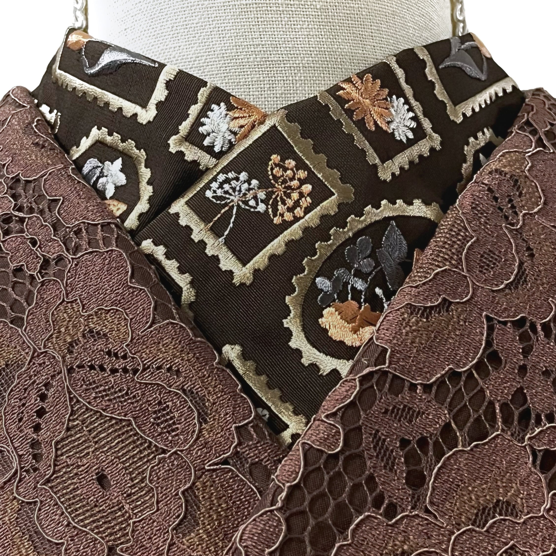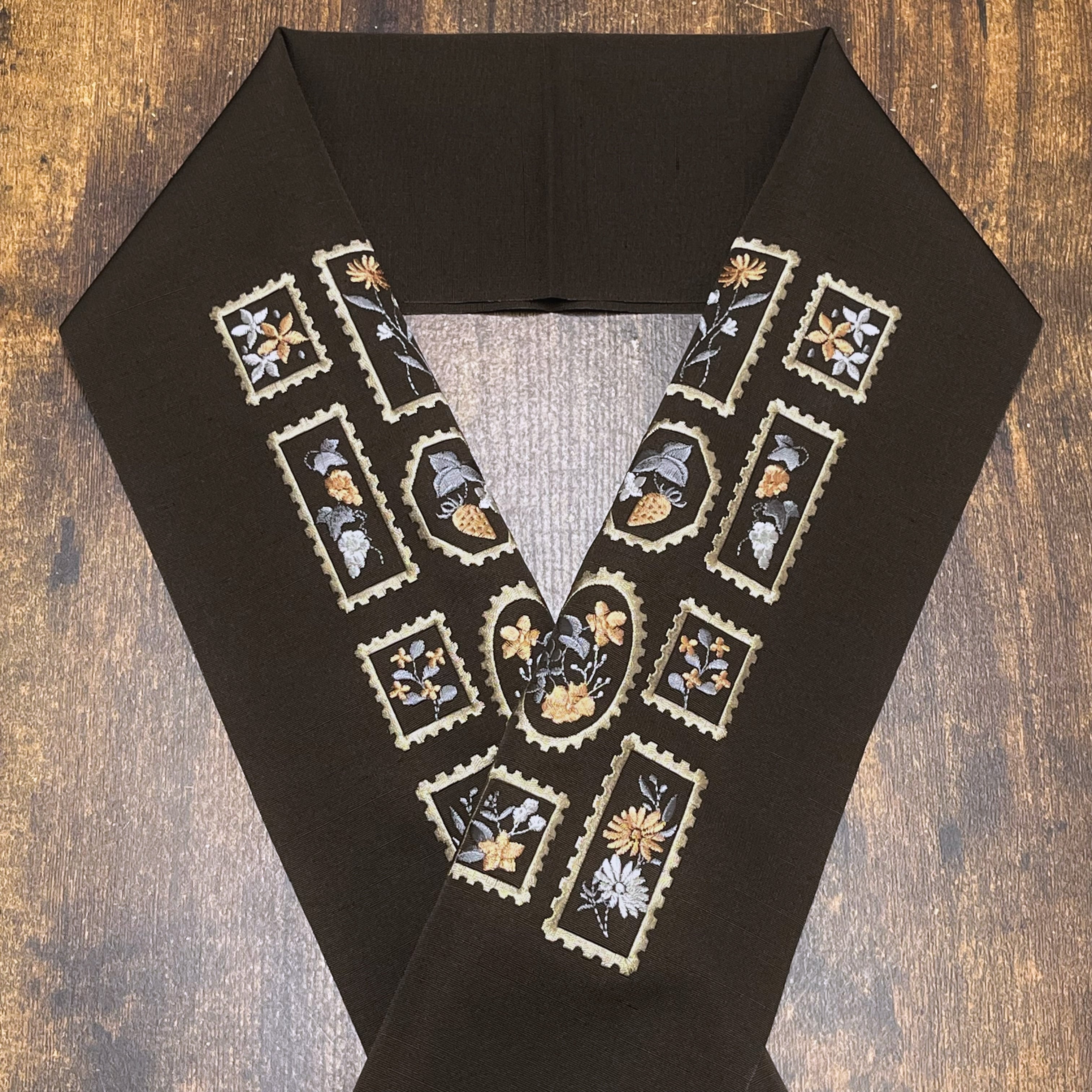 商品名:花柄の切手模様 刺繍半衿(チョコレートブラウン)
