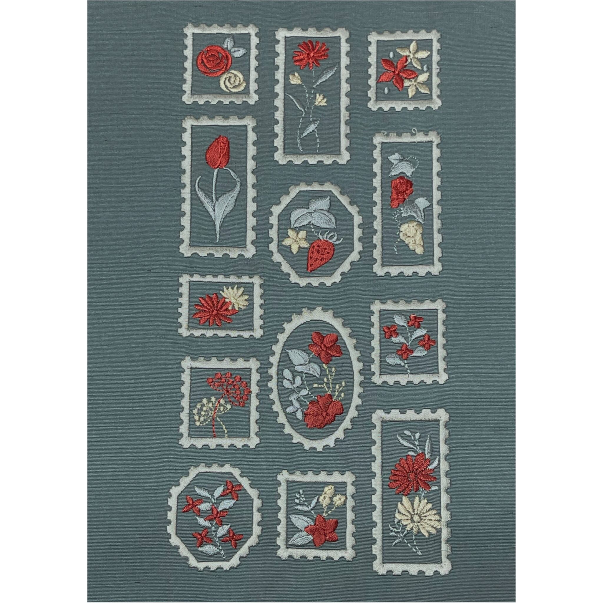 商品名:花柄の切手模様 刺繍半衿(湊鼠色)