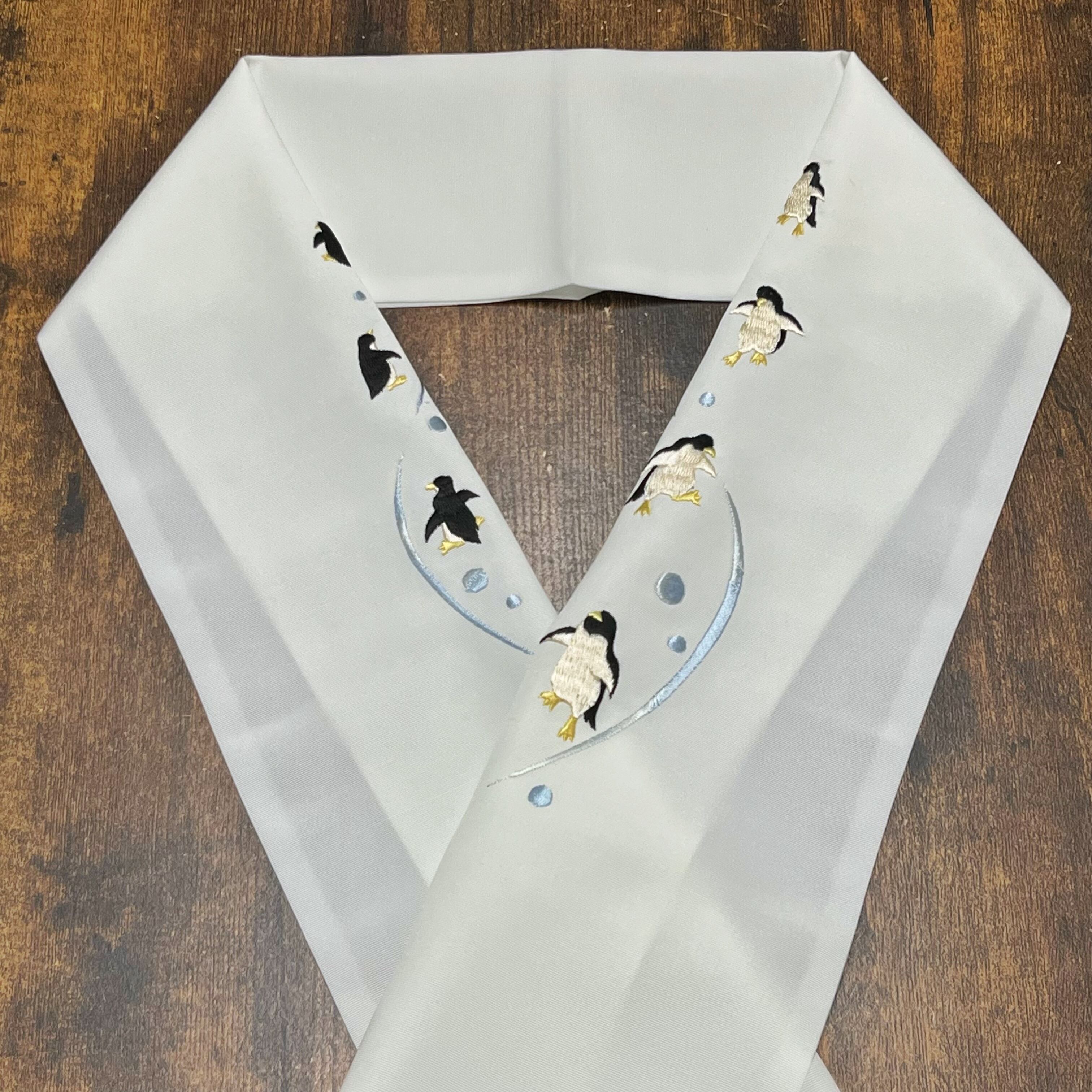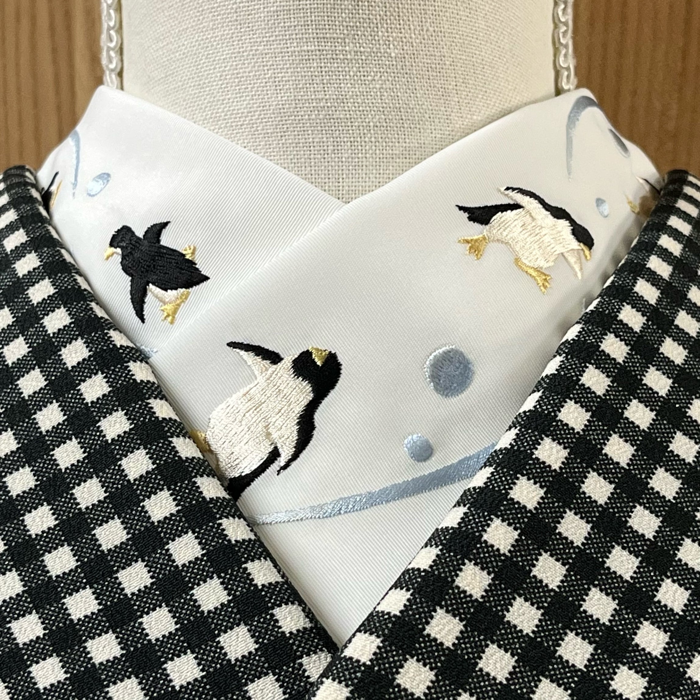 よちよちと歩くペンギン柄が刺繍された可愛らしい半衿です☺︎