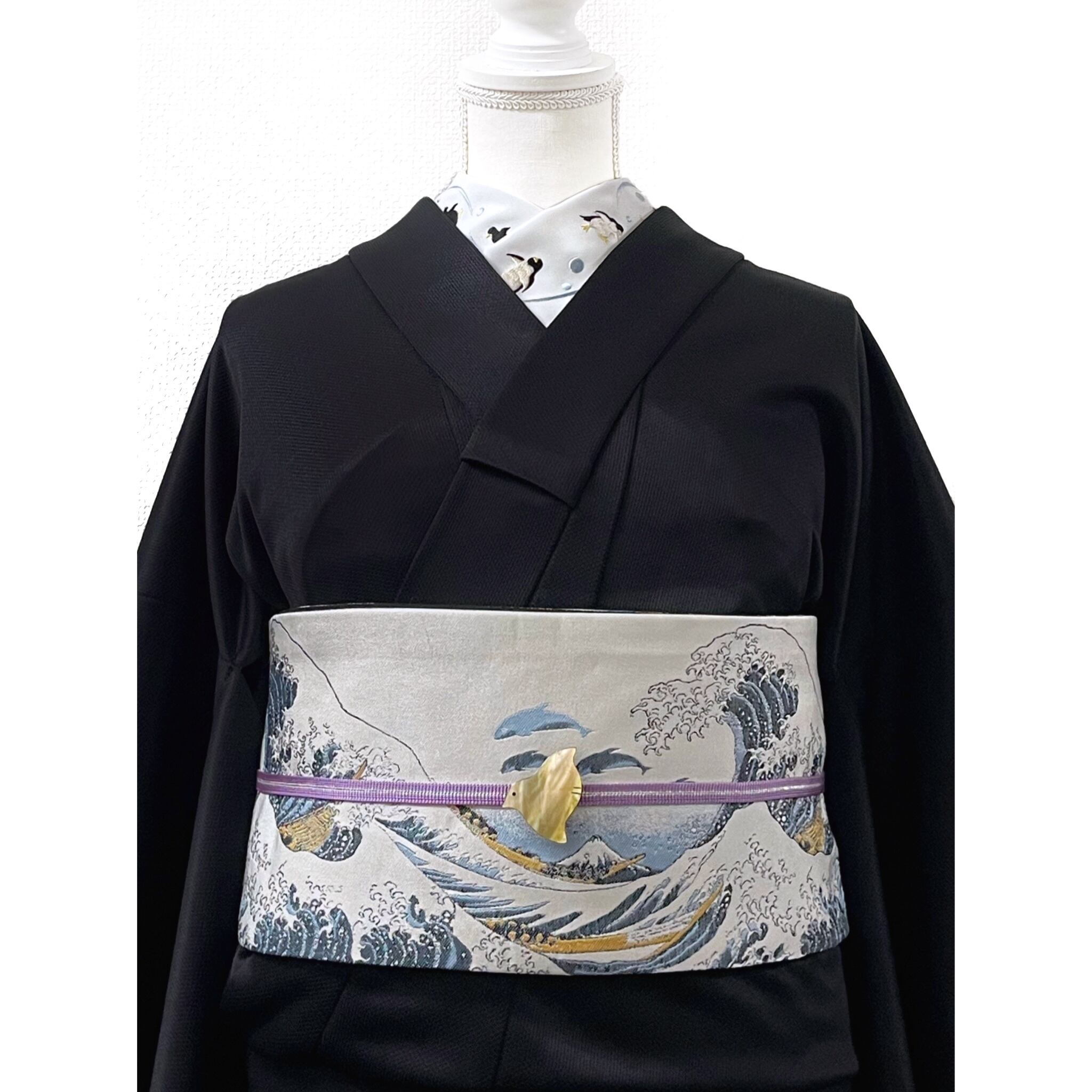 商品名:ペンギン刺繍半衿(ブラック)