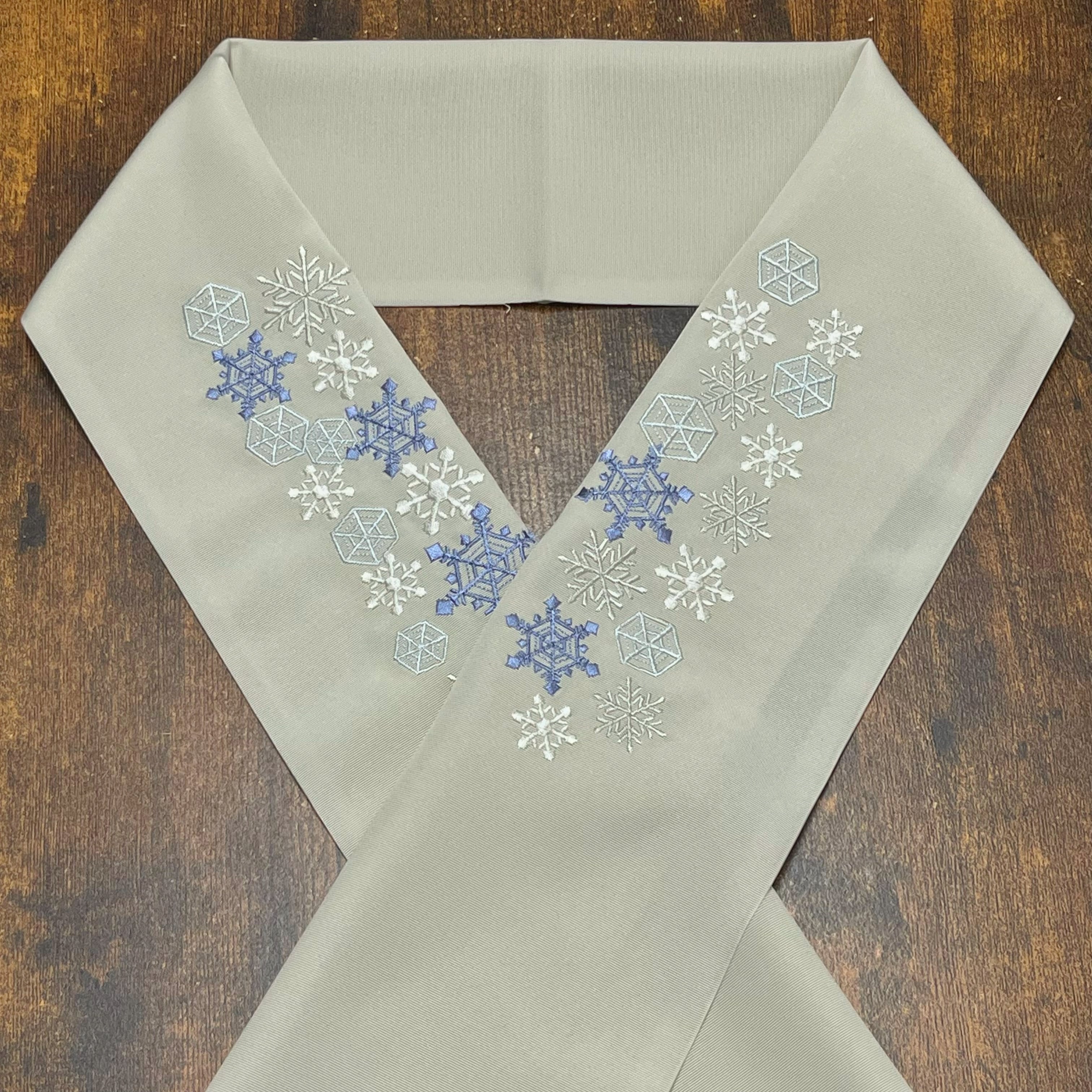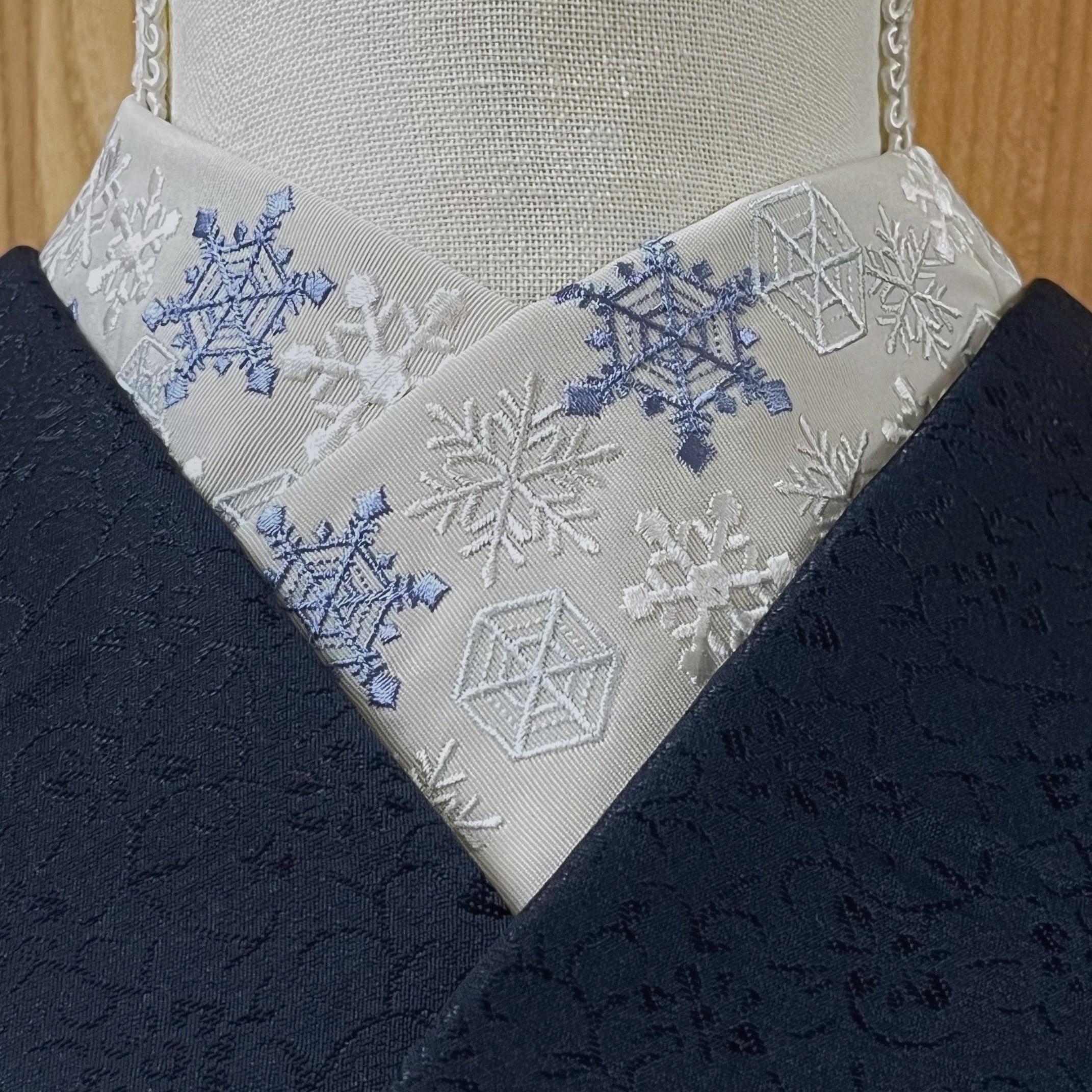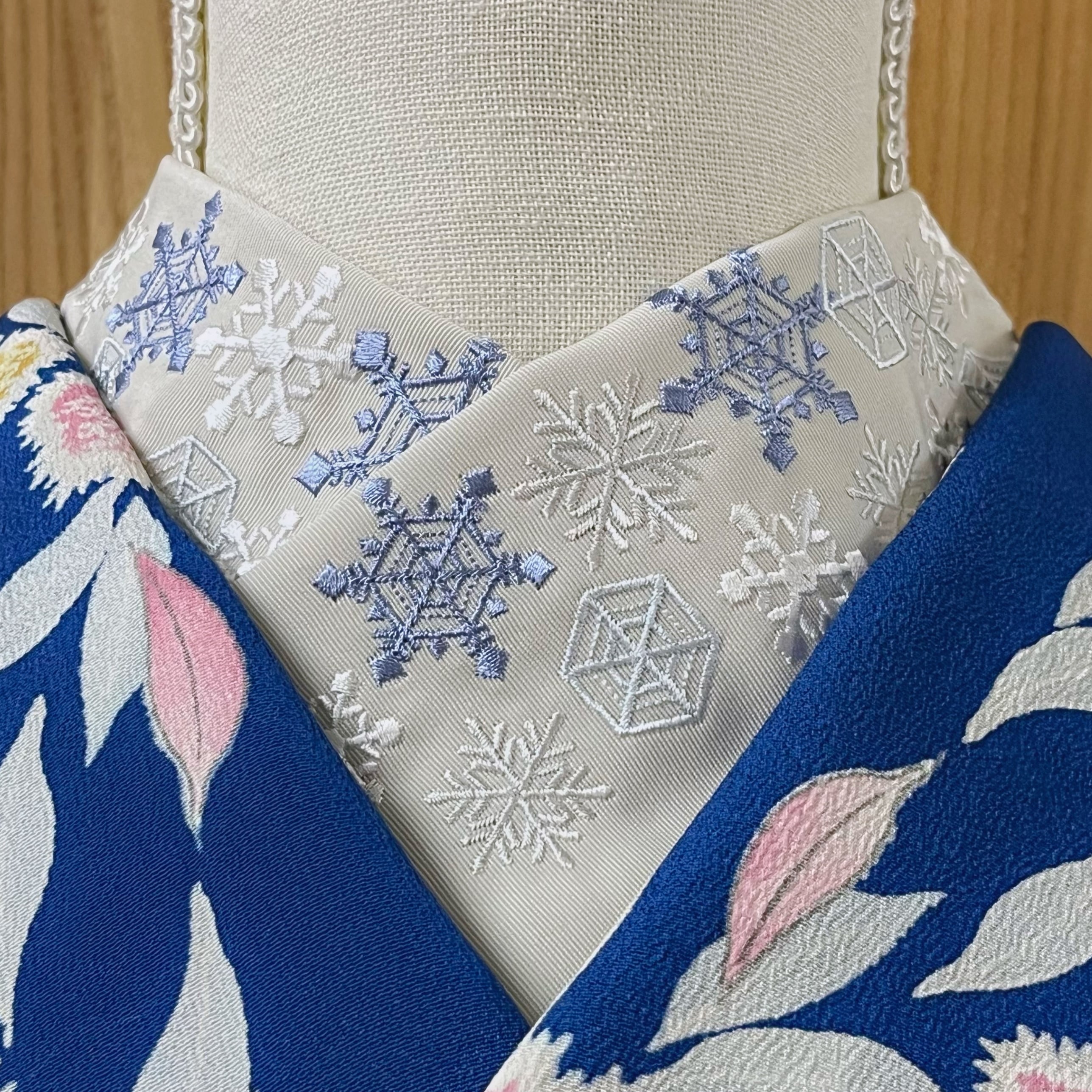 雪の結晶文様が刺繍された綺麗めで可愛らしい半衿です☺︎