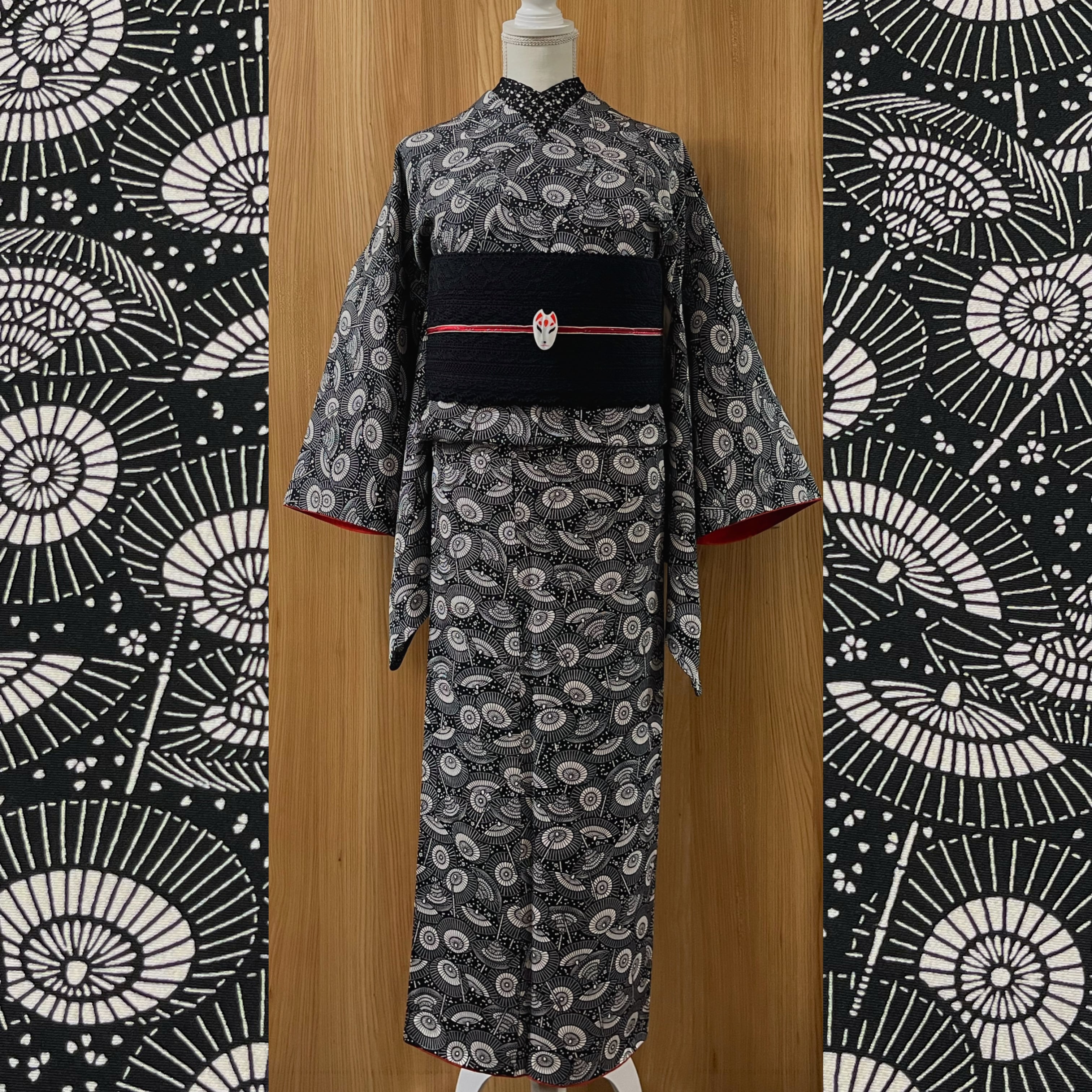 ・商品名:「珍粋謹製 モノトーンの番傘文様 小紋着物」