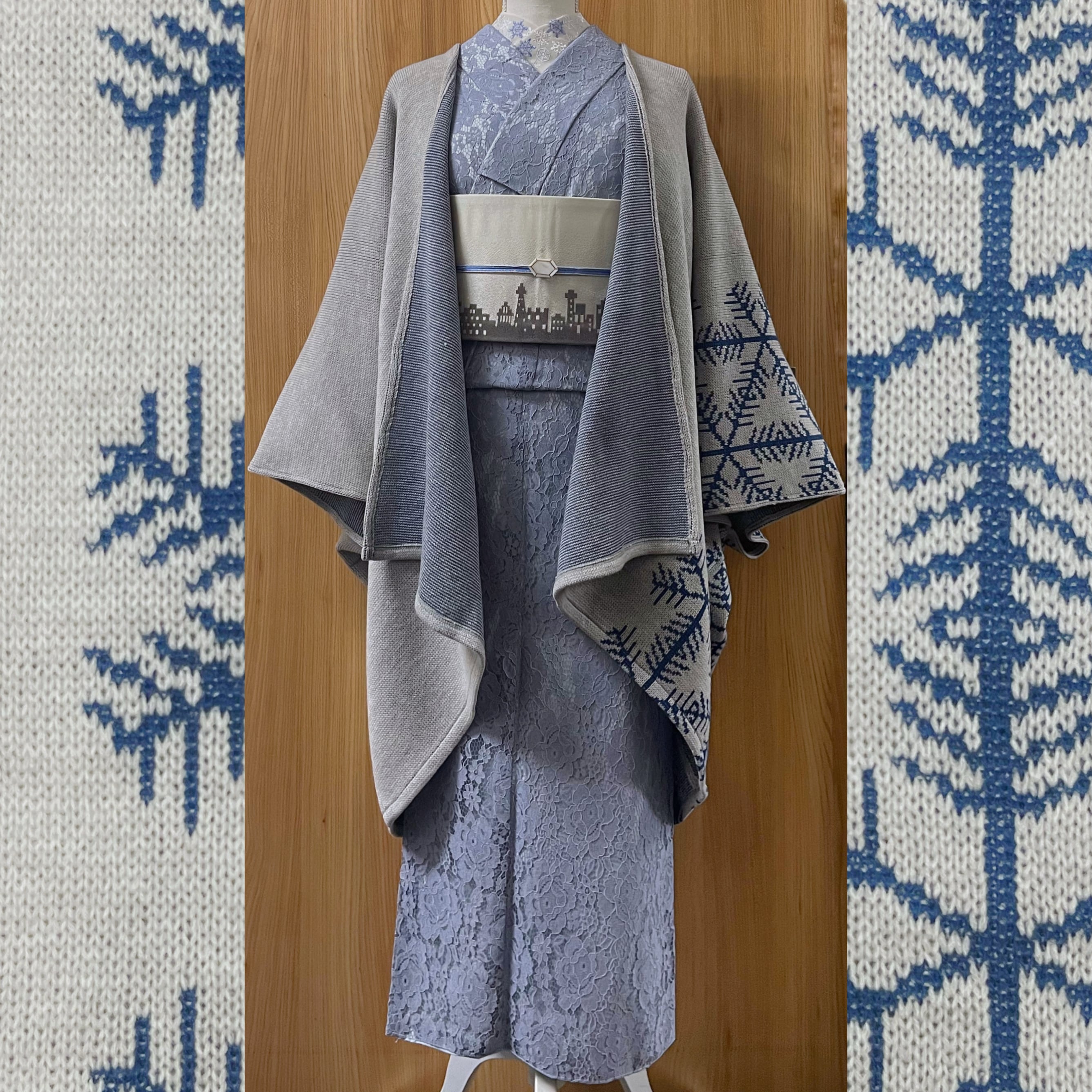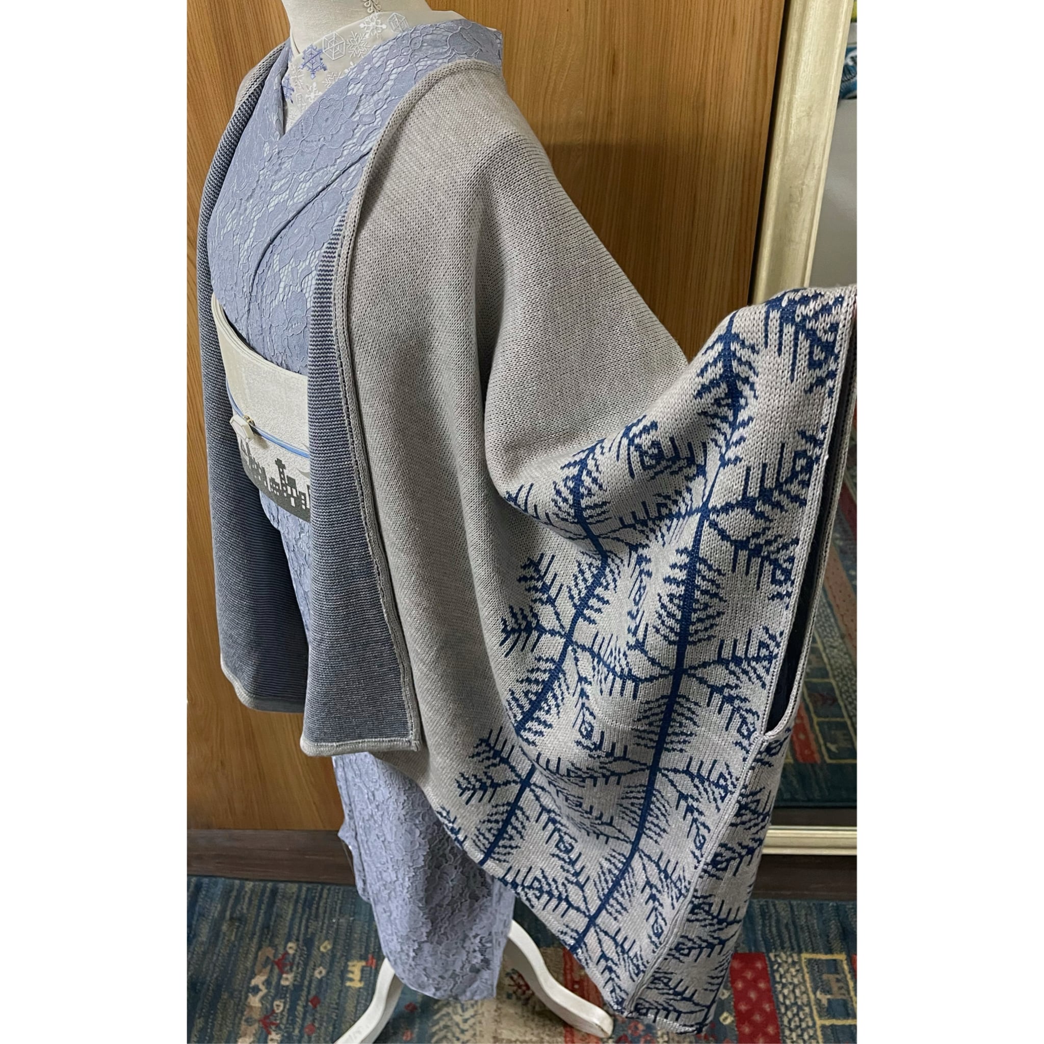【新品】カヤ 国産ニット紋色羽織(ライトグレー)