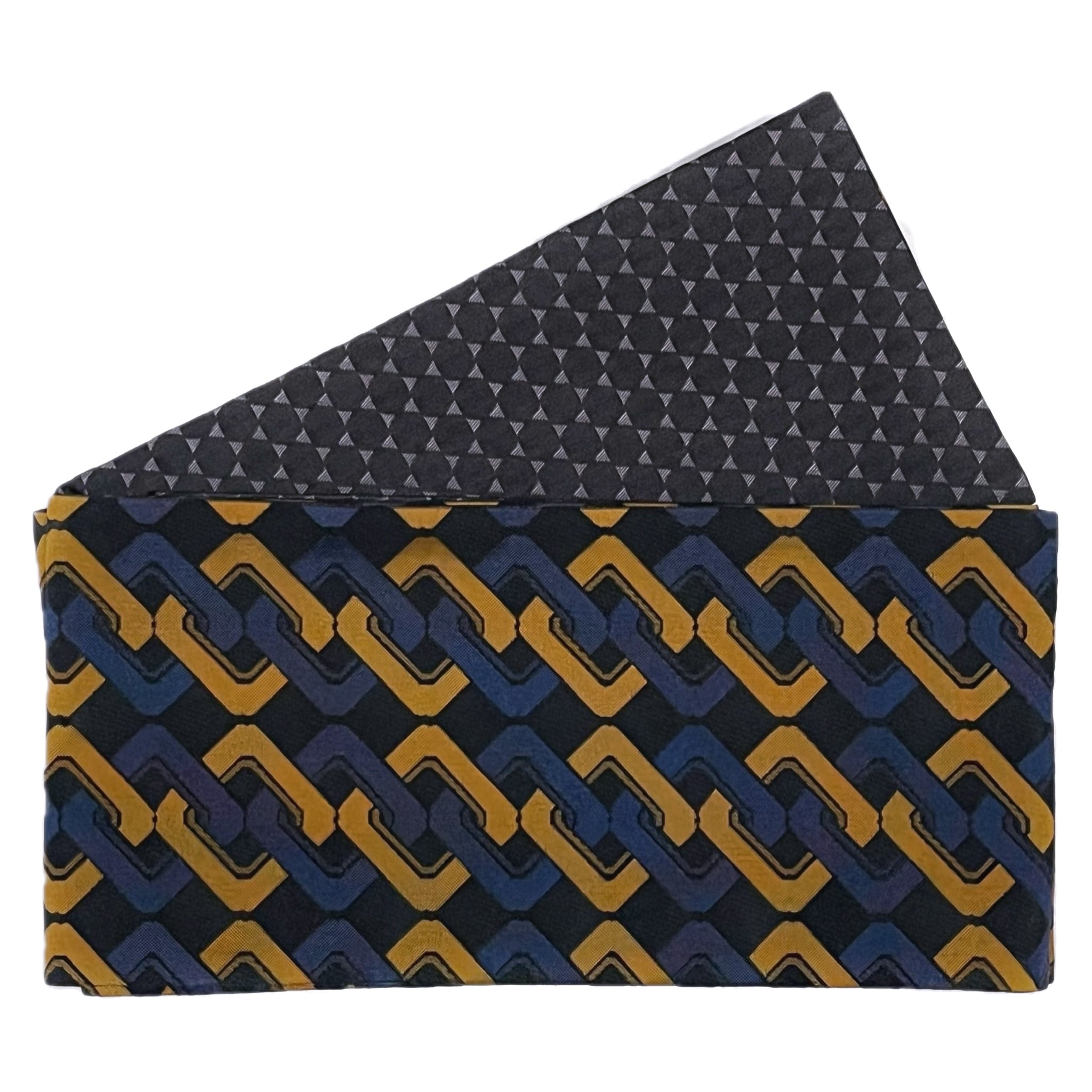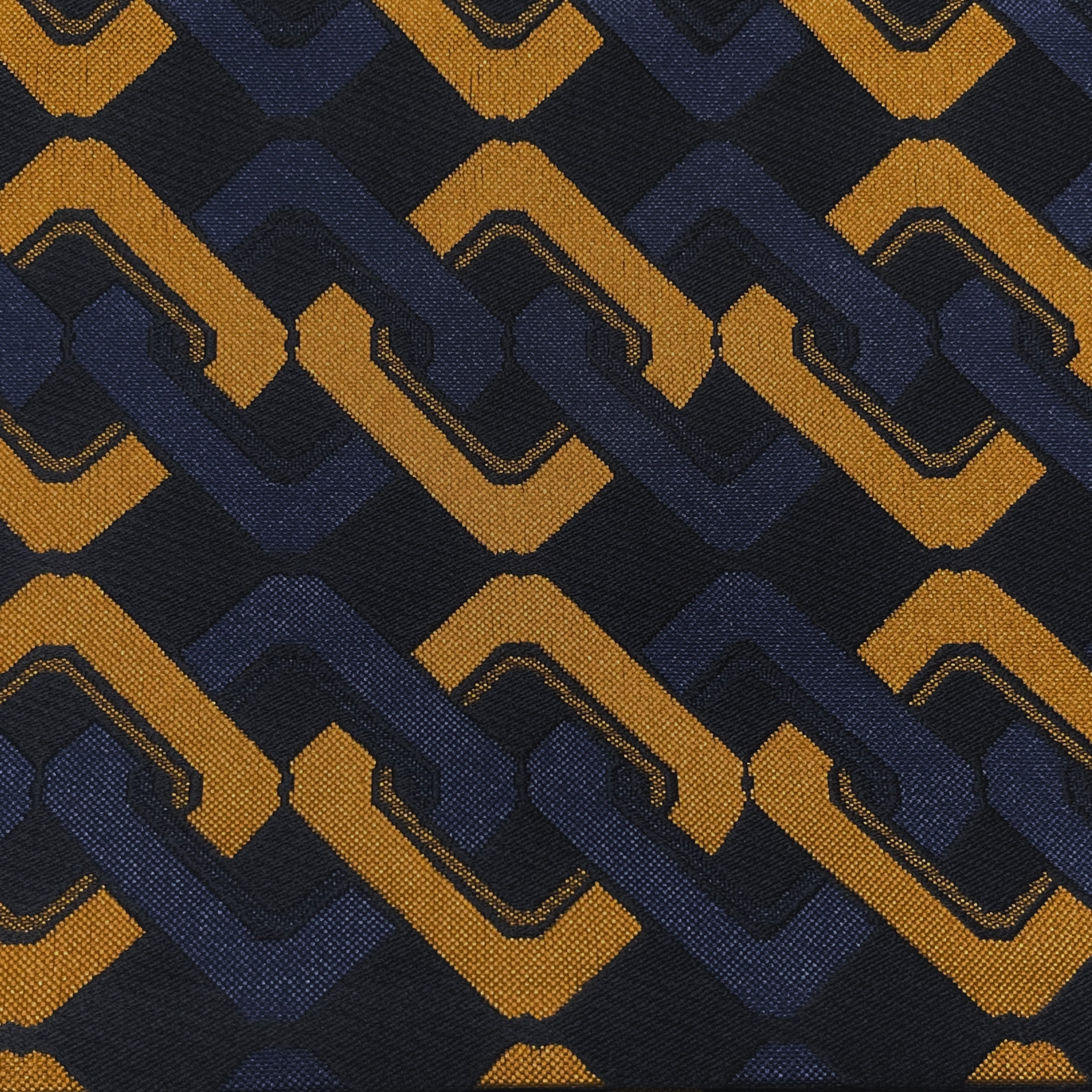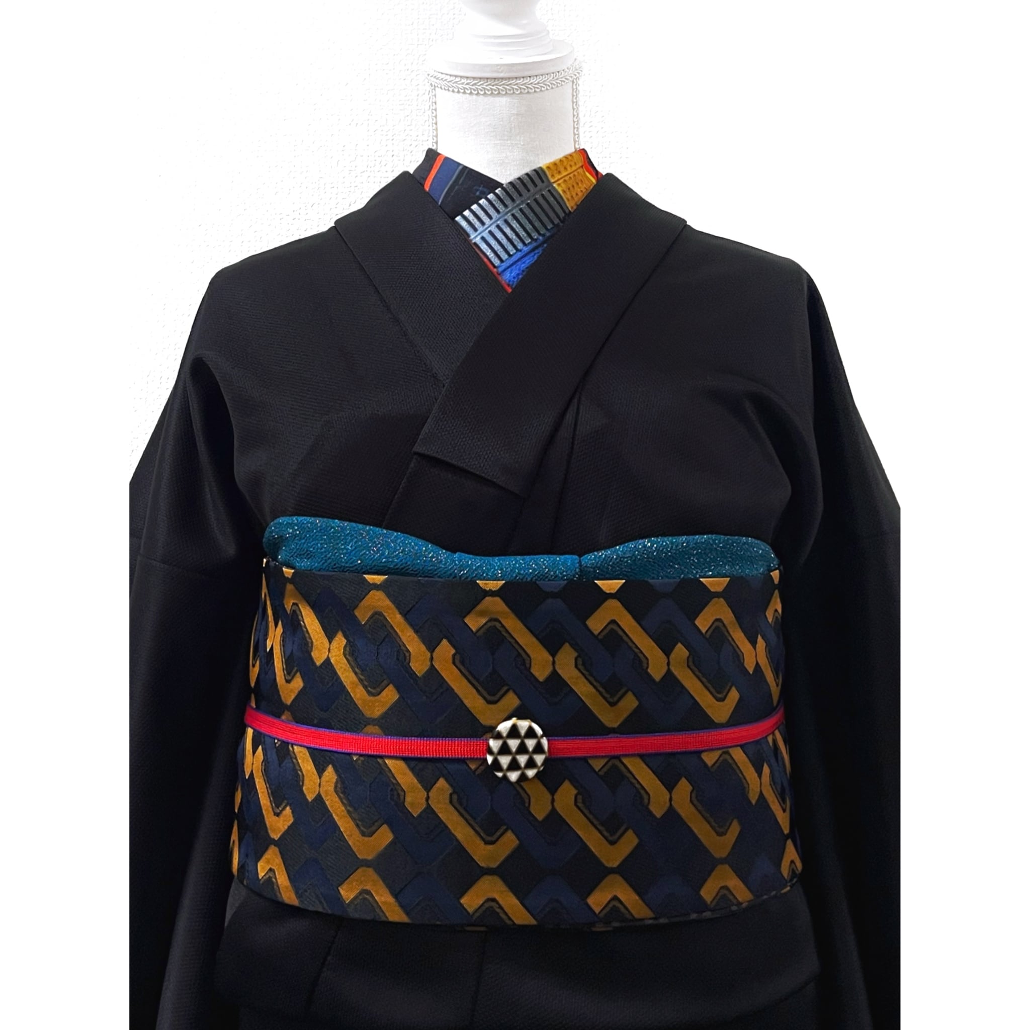 色柄説明:黒色の地にネイビーブルー×蘭茶色(赤みの黄褐色)の廓繋ぎ文様がデザインされた粋でモダンな一本です☺︎