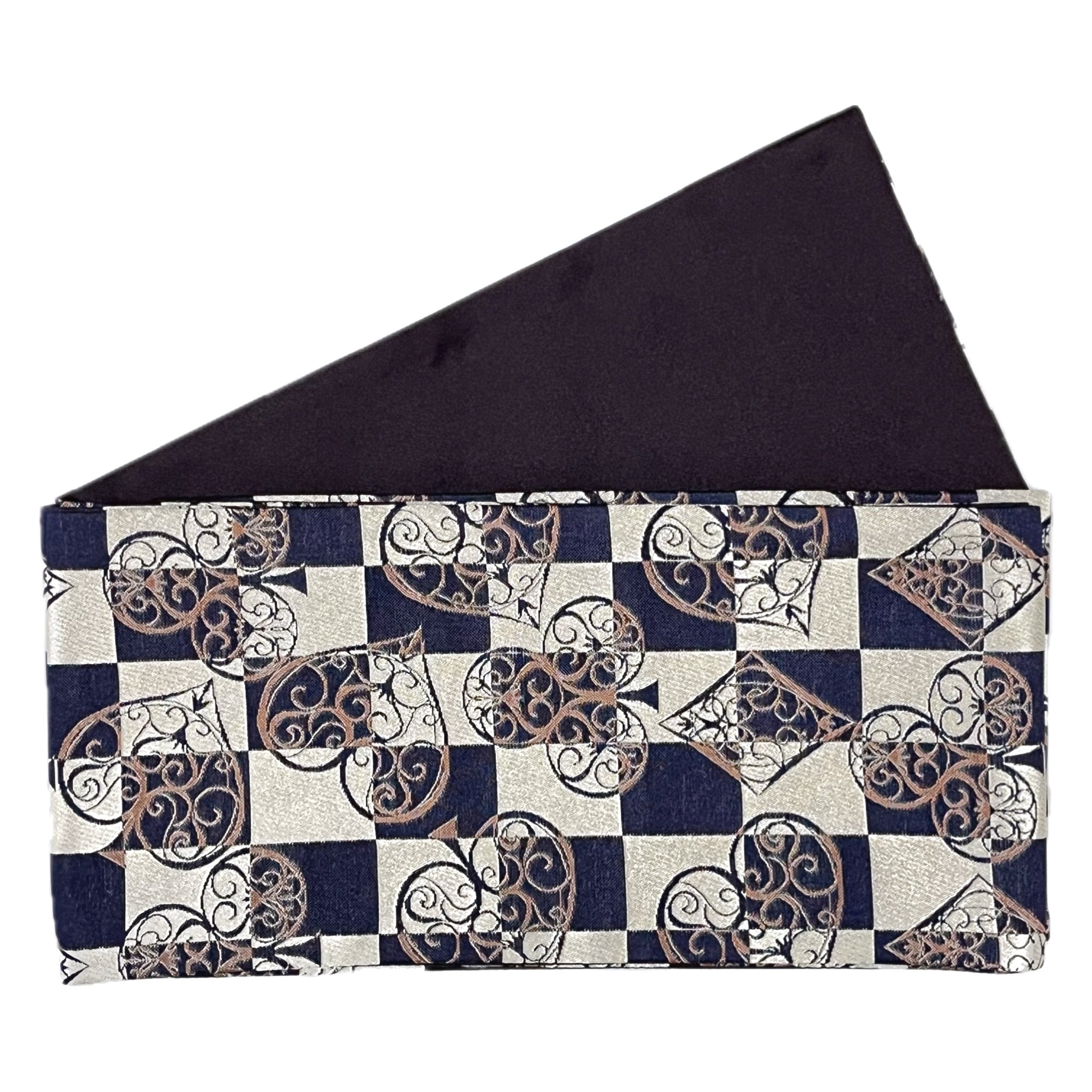 【新品】おりびと 市松文様にスート柄のリバーシブル半幅帯