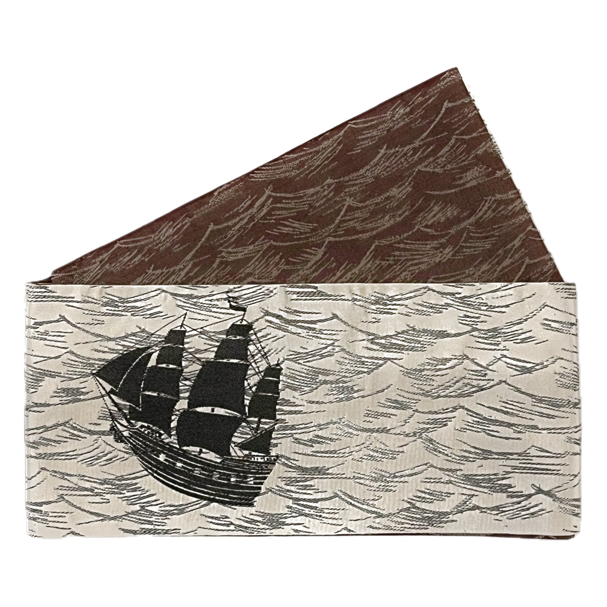 商品名:「ロングタイプ 波に帆船模様のリバーシブル半幅(オフホワイト)」