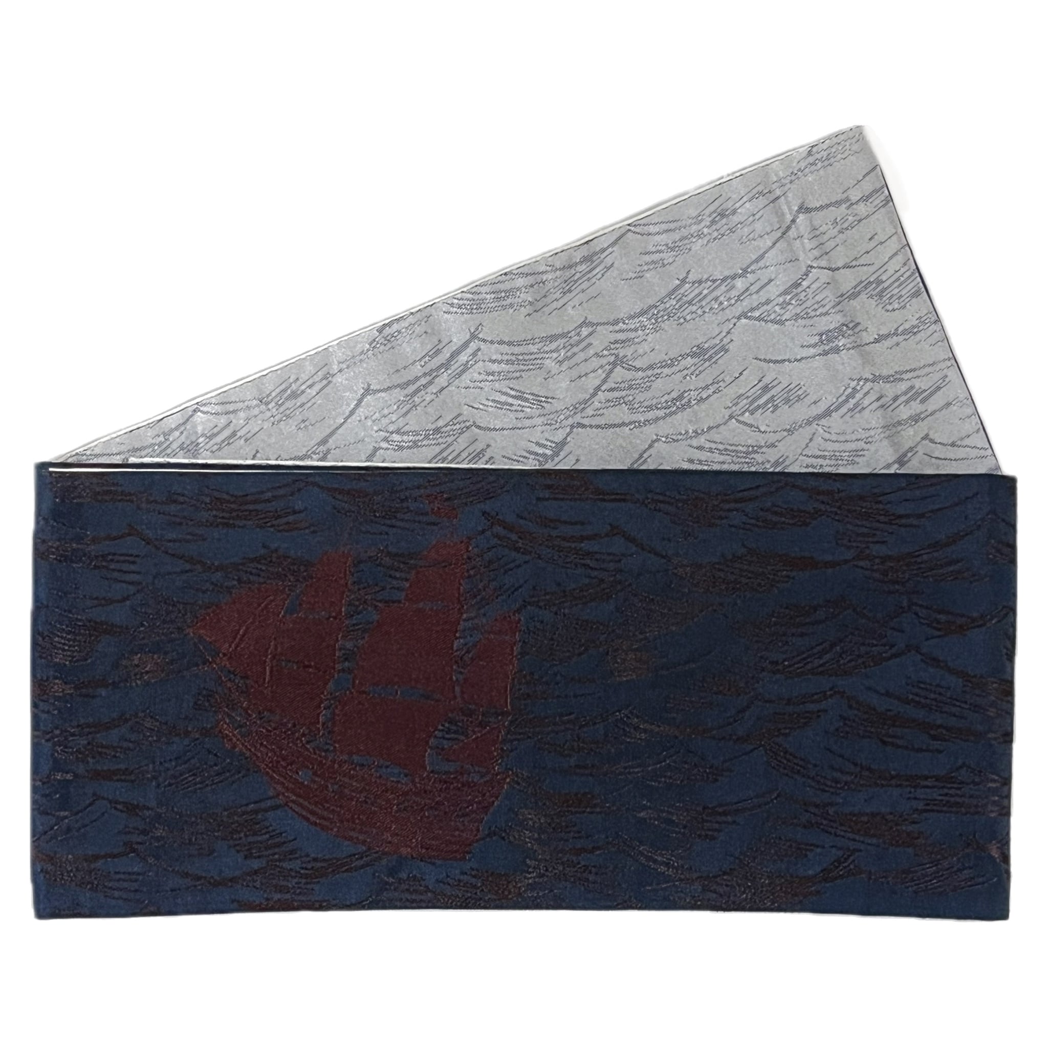 商品名:「ロングタイプ 波に帆船模様のリバーシブル半幅(ネイビー)」