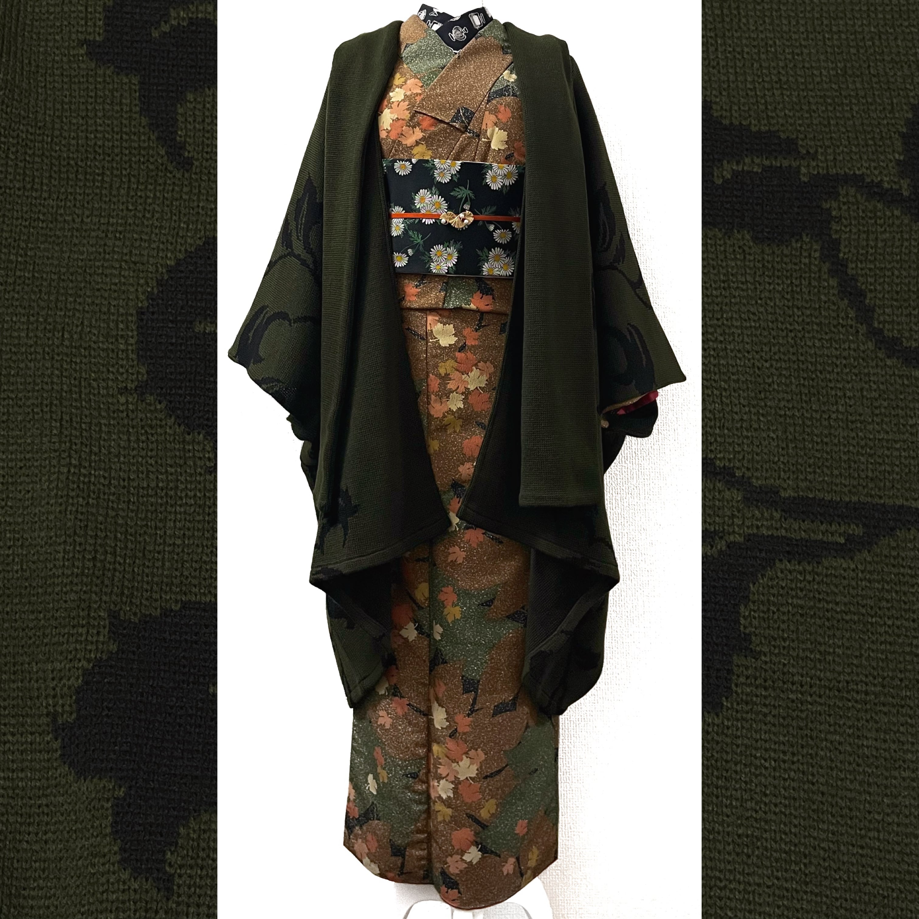 【新品】カヤ 国産蔦蔓ニット羽織(柳煤竹色)