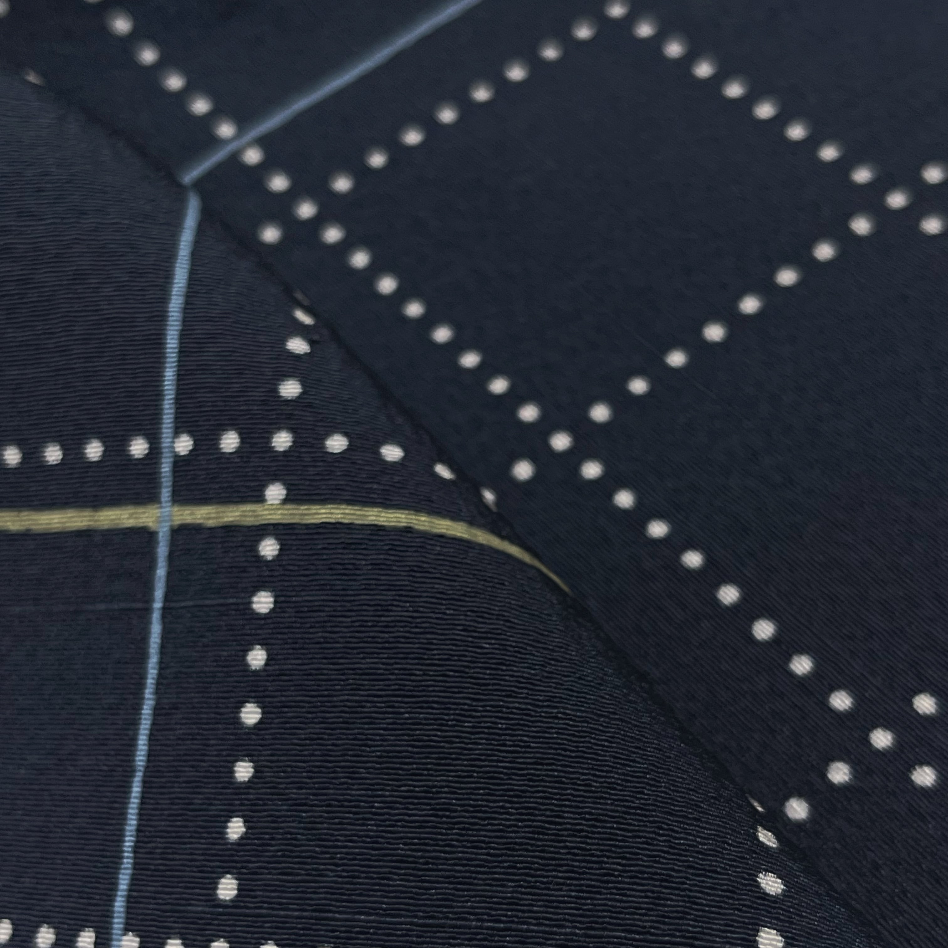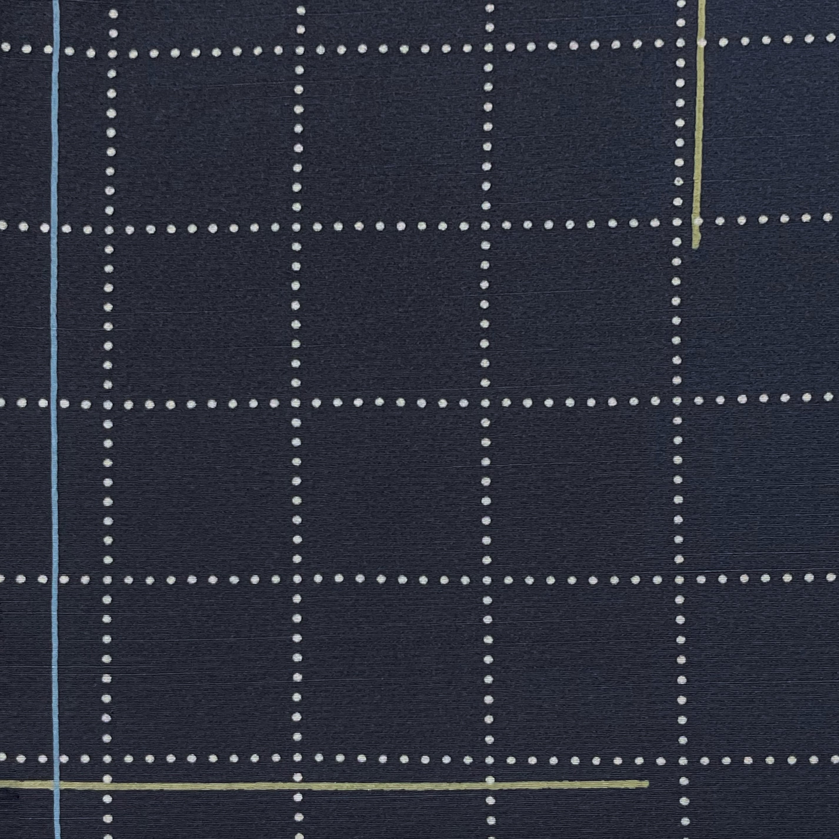 ネイビーブルーに縦横ライン・ドット格子模様の小紋着物