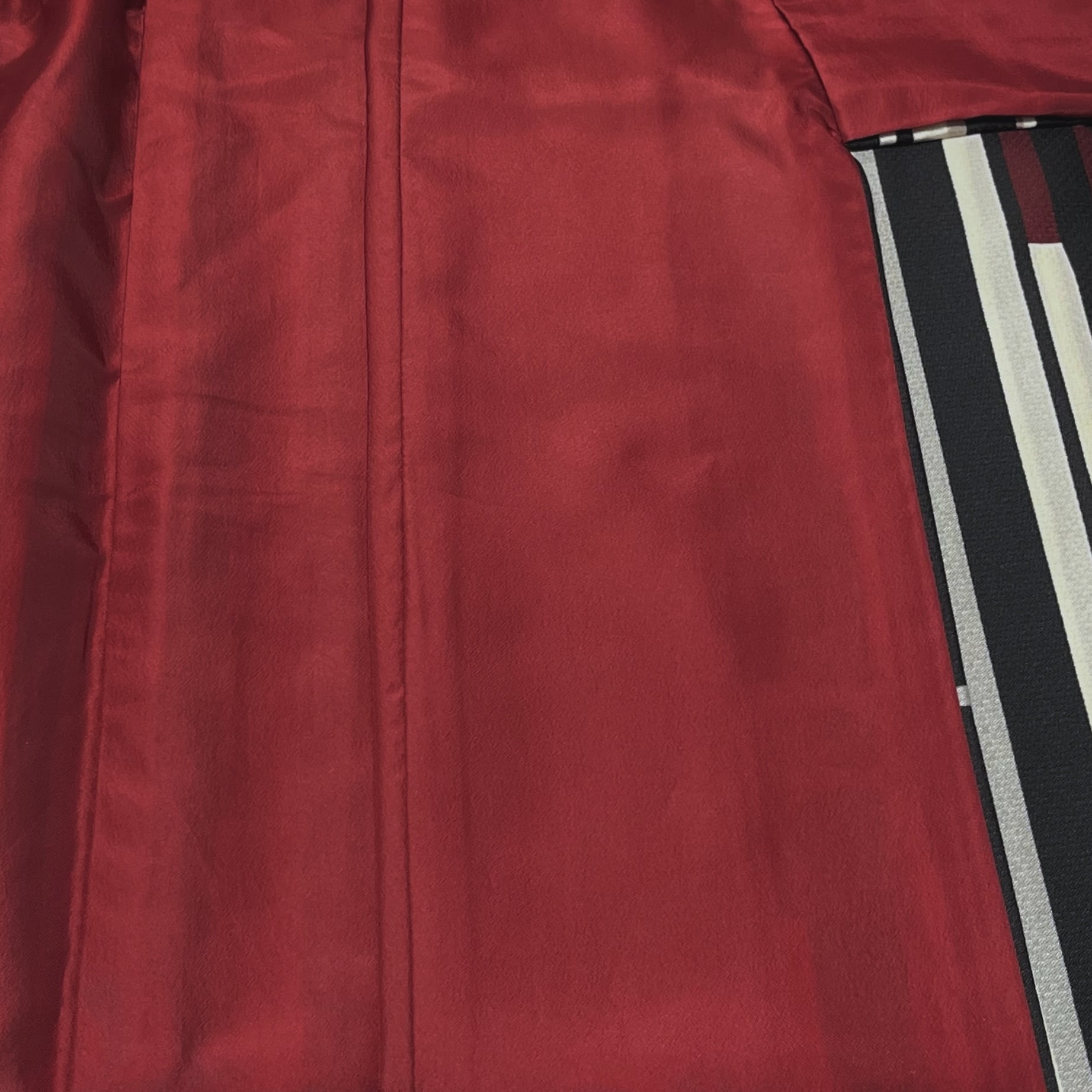 ボルドーカラー×モノトーンの変わりストライプ洗える小紋着物