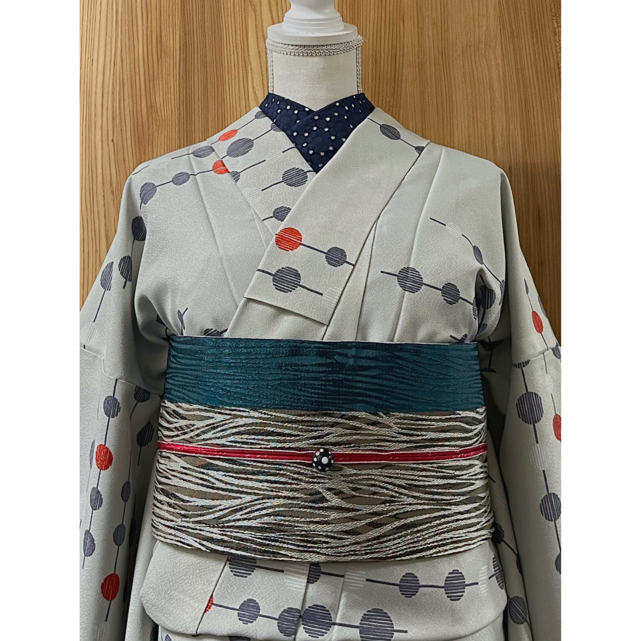 ・商品名:「横線に水玉模様の洗える小紋着物」
