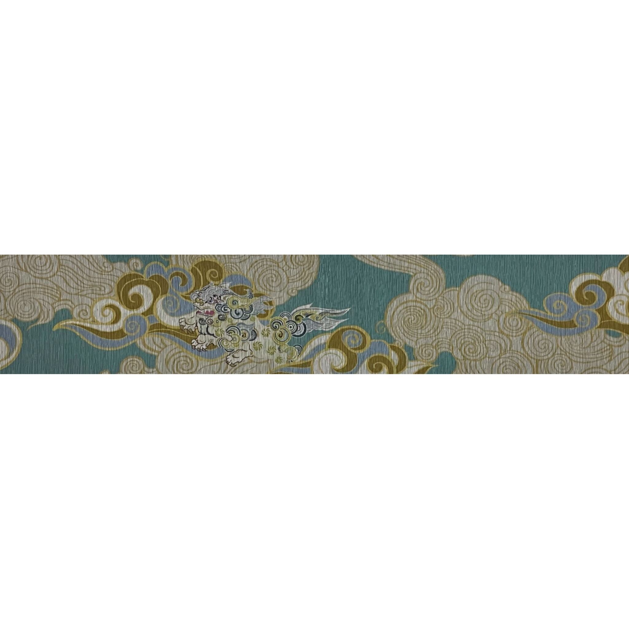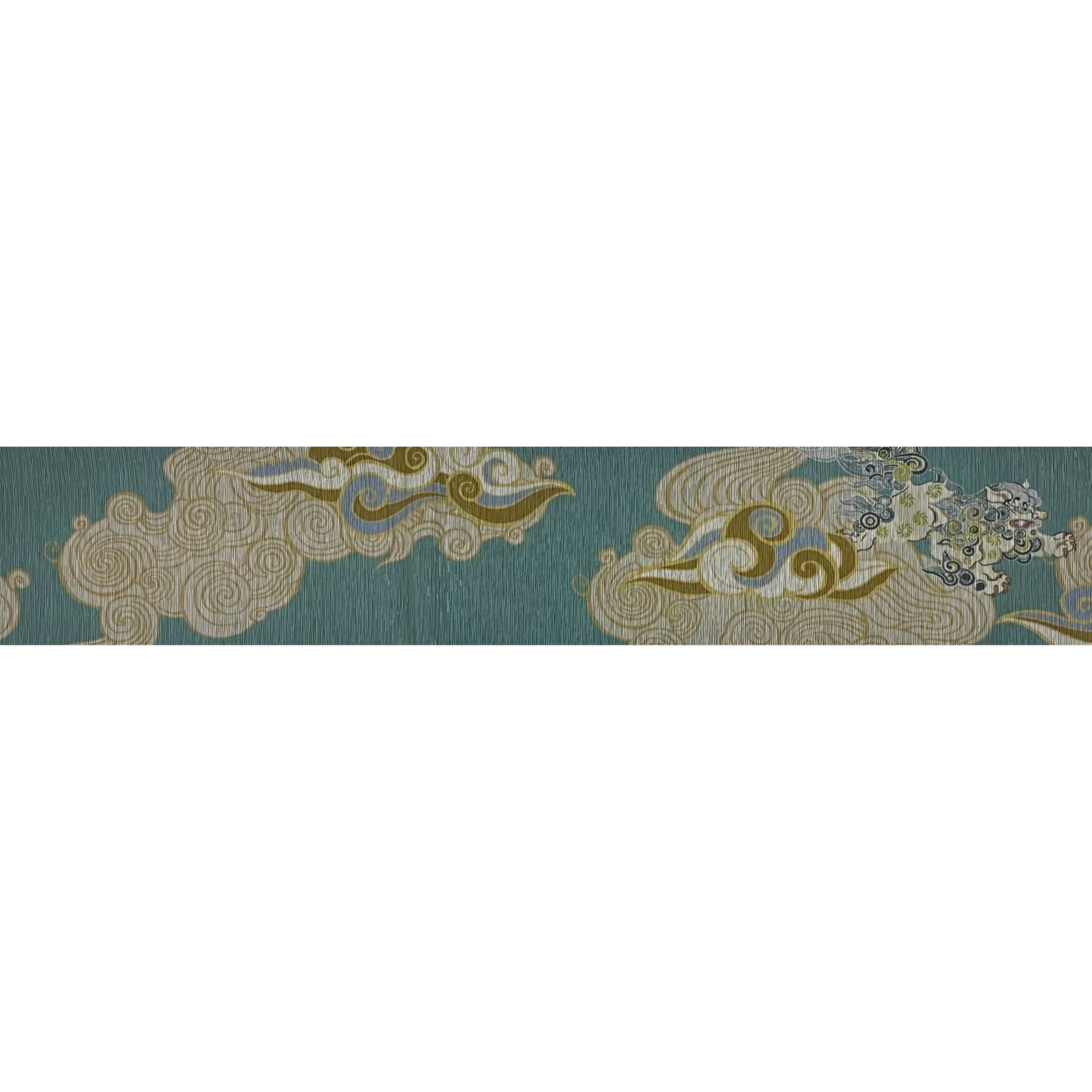 瑞雲模様に獅子が2頭、タレ先部分には三日月がデザインされた幻想的で美しい半幅帯です☺︎
