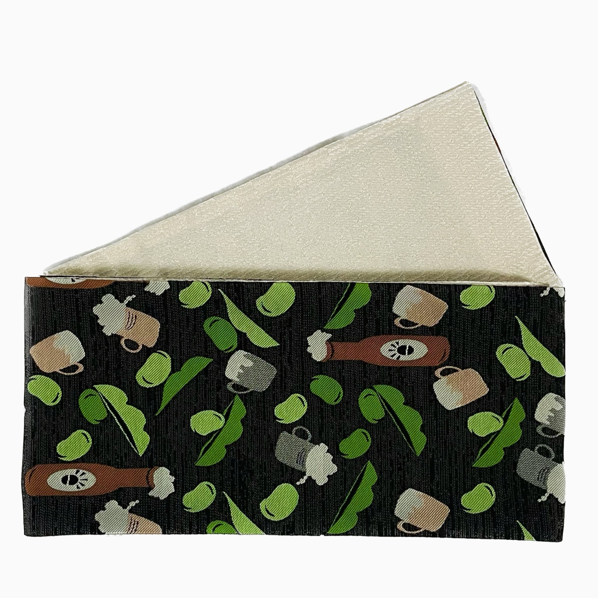 商品名:「おりびと ビールに空豆デザインのリバーシブル半幅帯(黒色)」