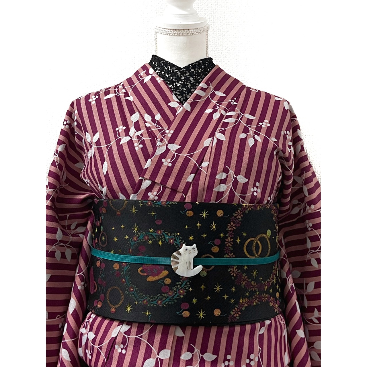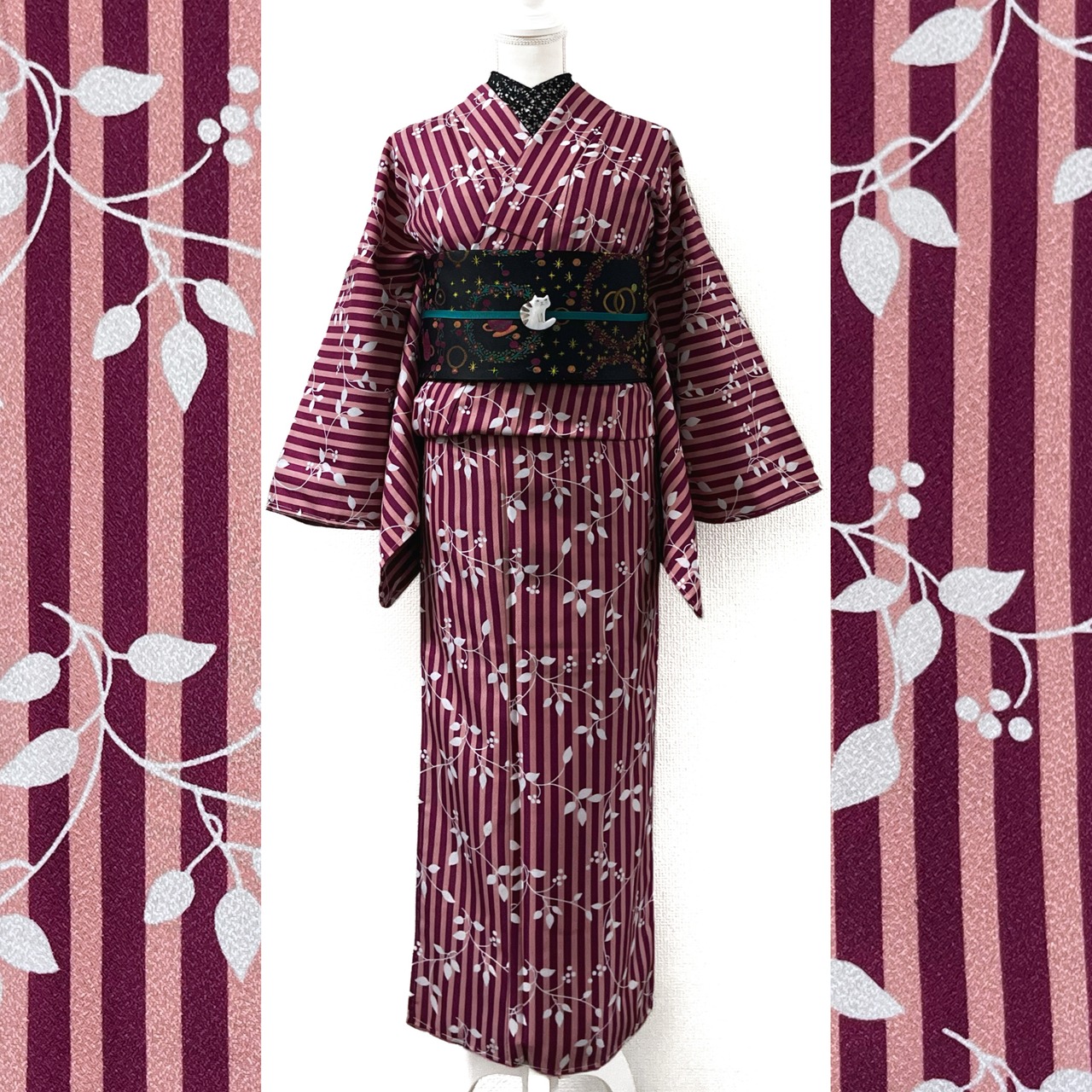 ・商品名:「ストライプに葡萄唐草模様の洗える小紋着物」