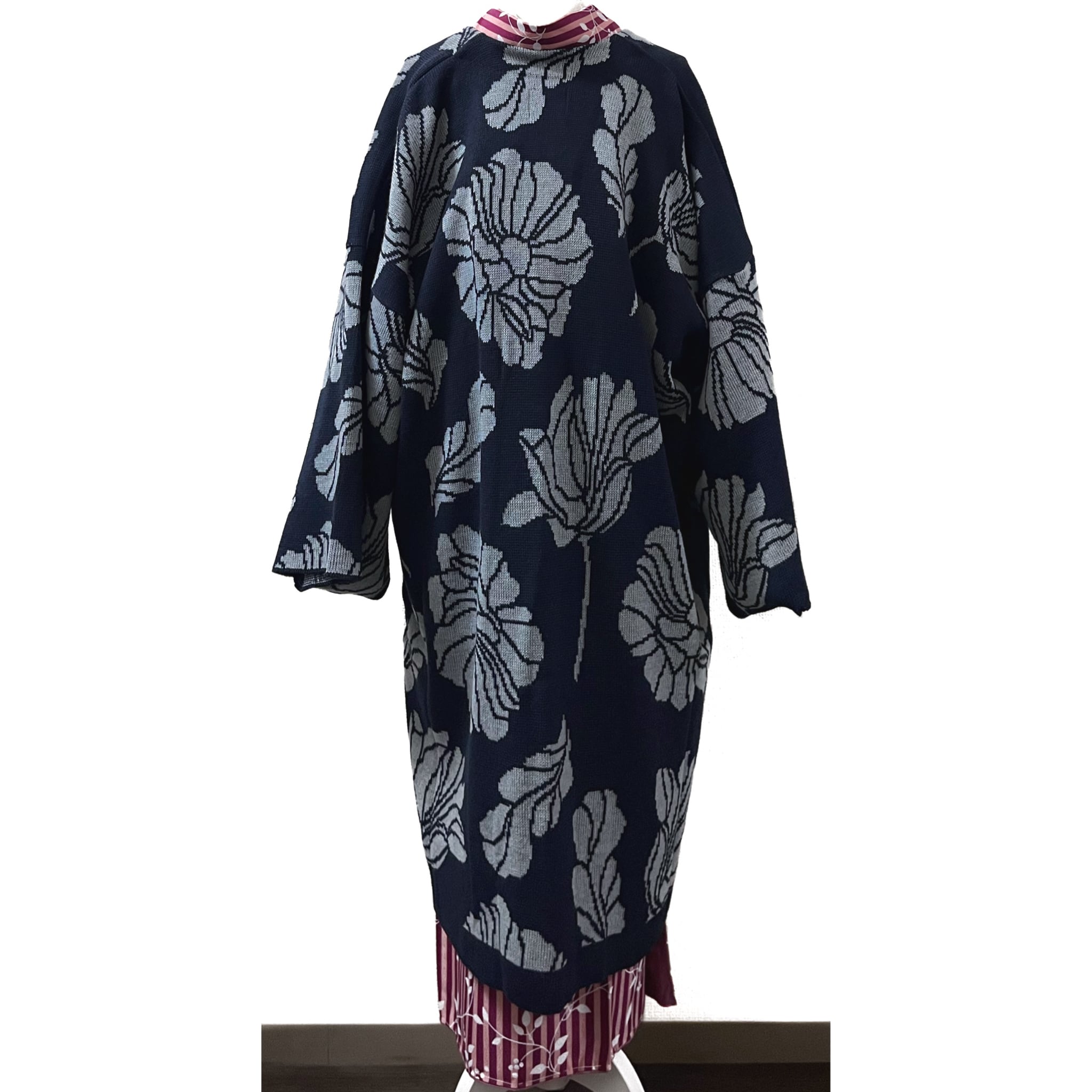 ・商品名:「カヤ 国産ニット冬温し羽織(ネイビー)」