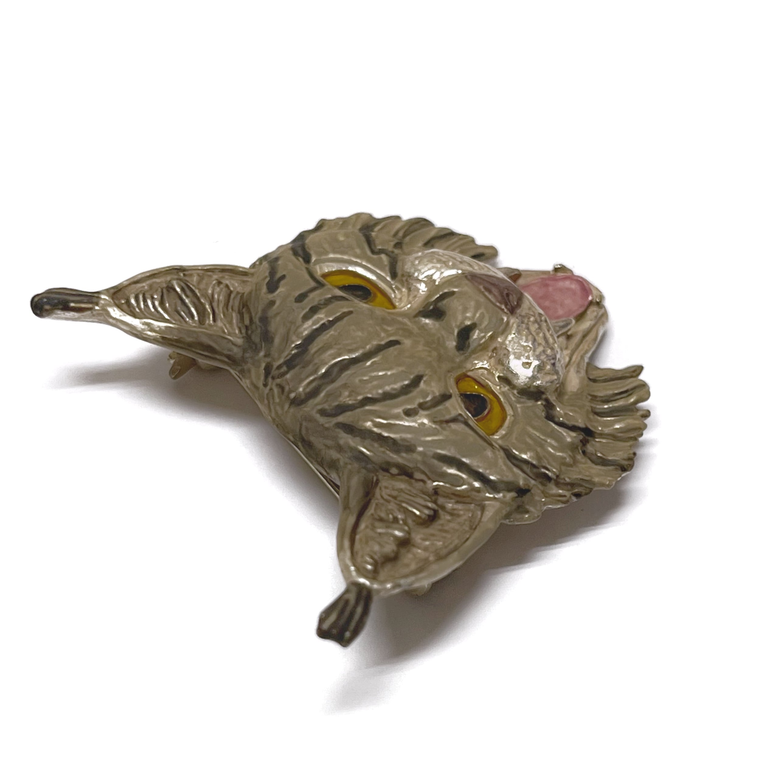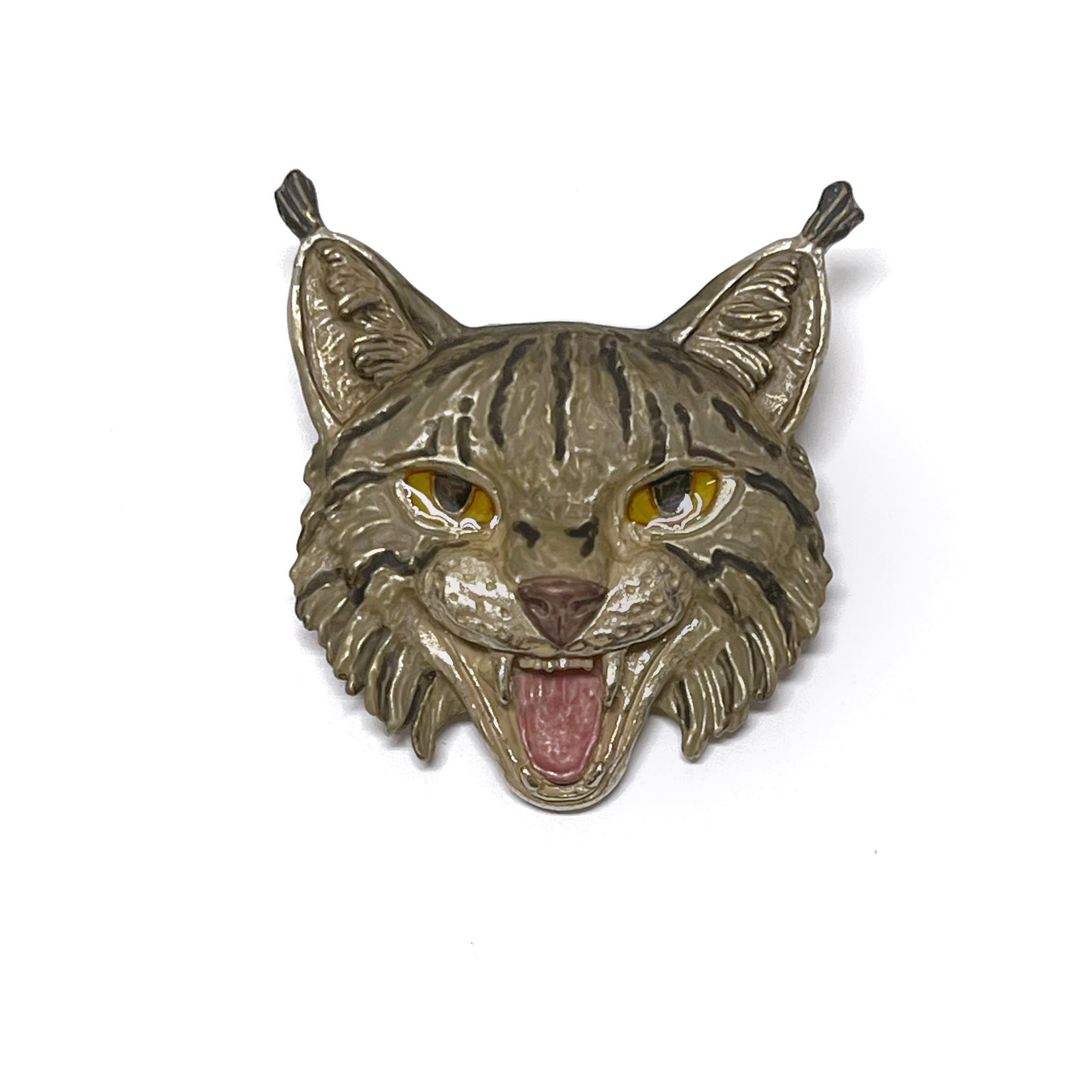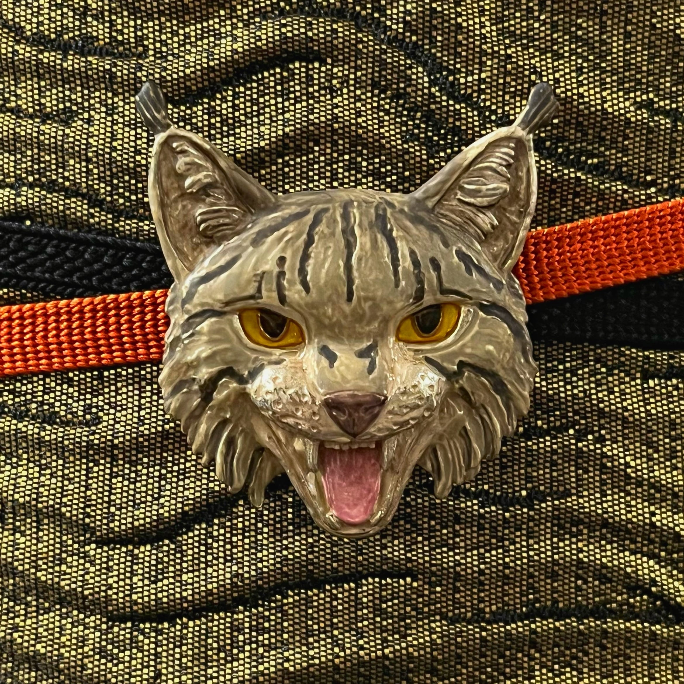 色・質感:剥き出しの牙や険しい表情から伝わる迫力満点の威嚇姿な山猫をモチーフにしたブローチです☺︎