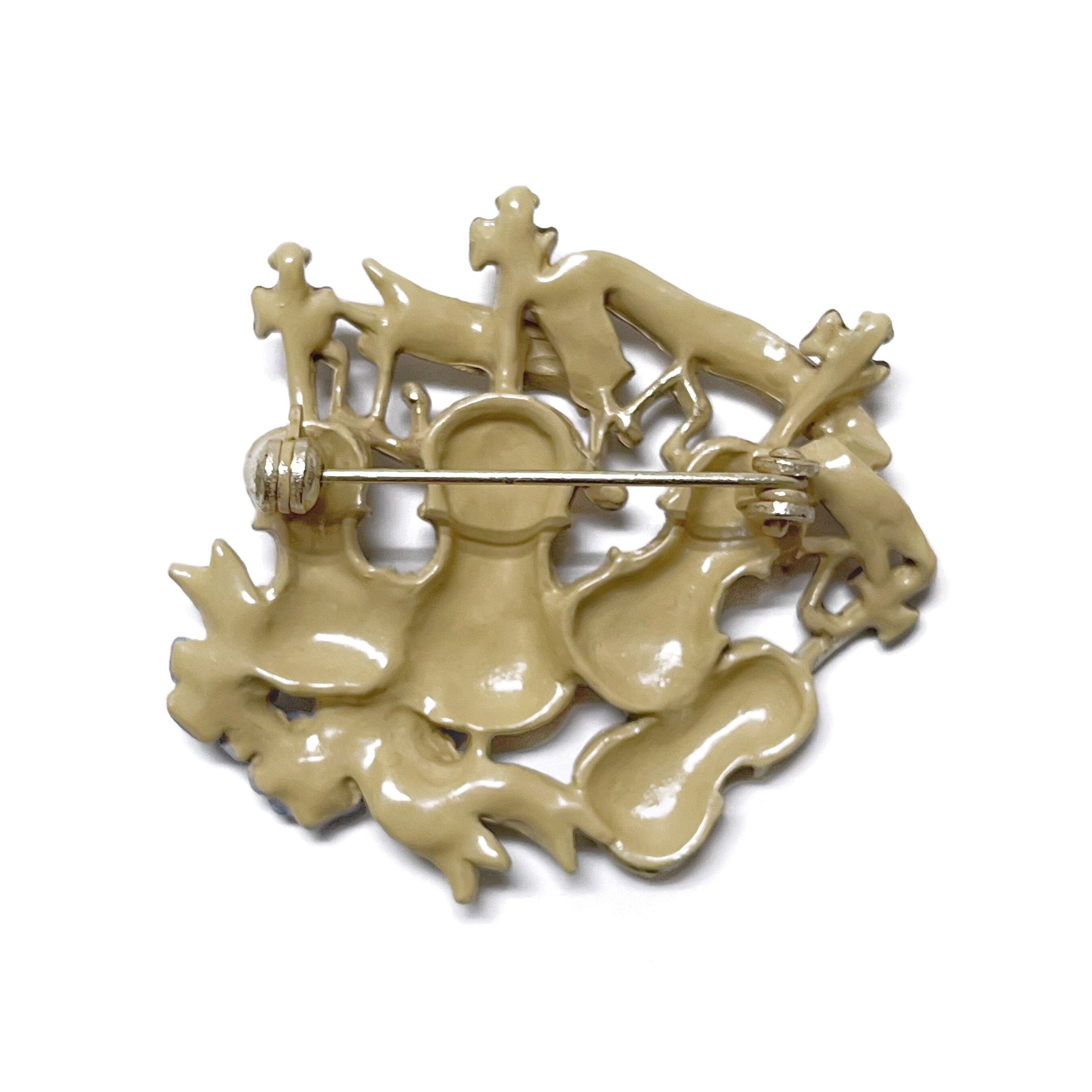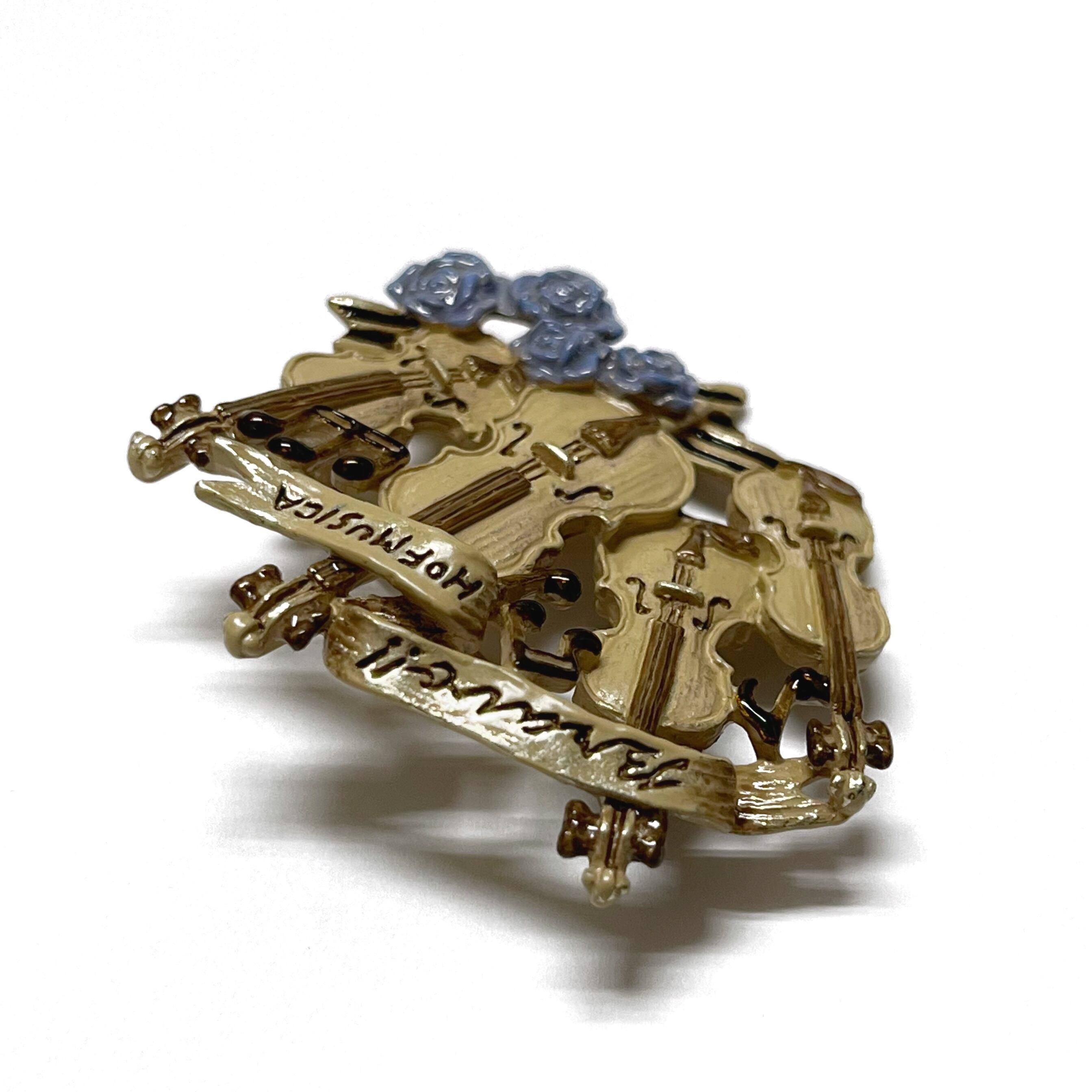 色・質感:セミマットなミルクティーベージュの彩色を施した金色の地金をベースにした、弦楽四重奏の演奏を終え、喝采を浴びている様子をイメージしたブローチです☺︎