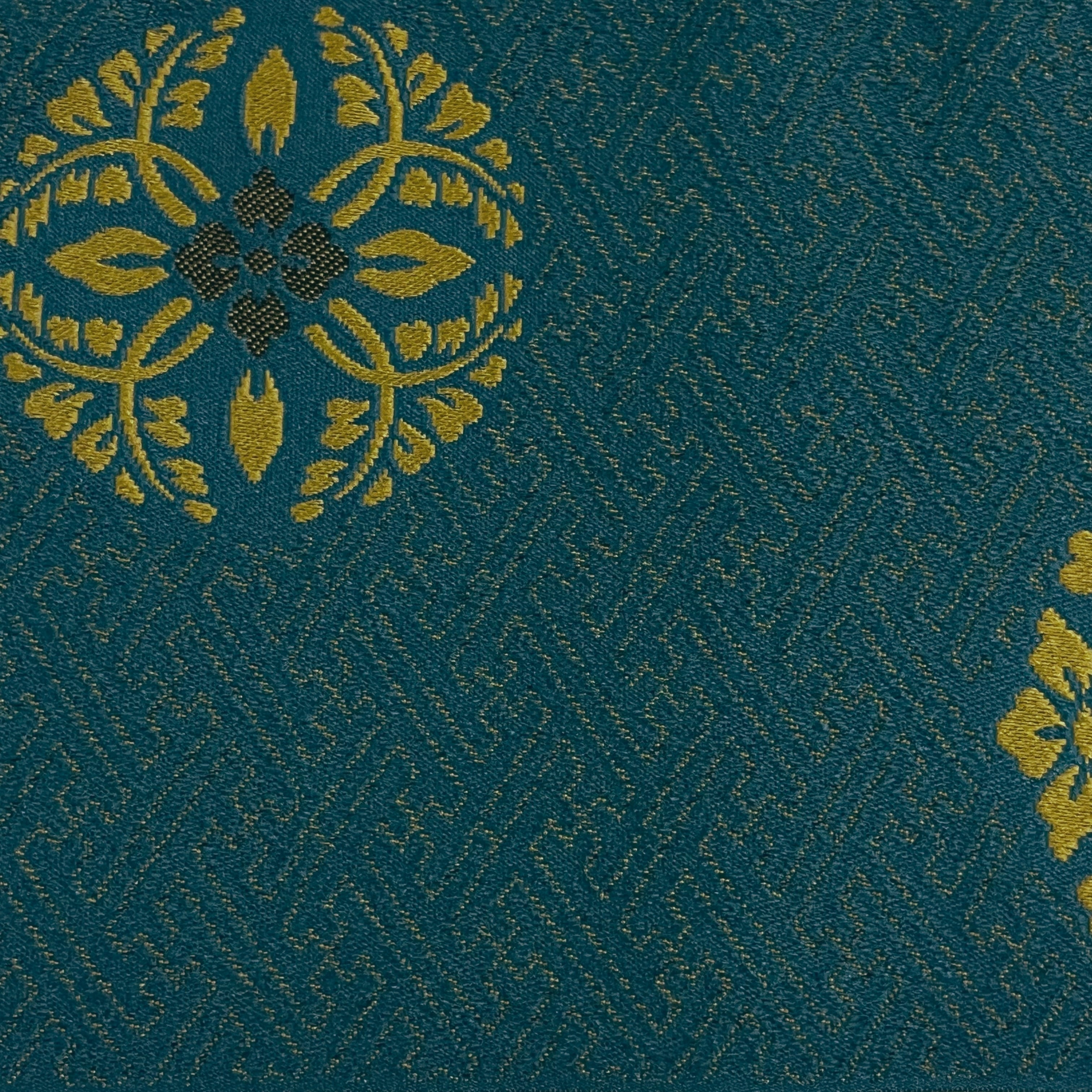 色柄説明:紗綾形の地紋が入った御納戸色色(緑みの暗い青色)の地に