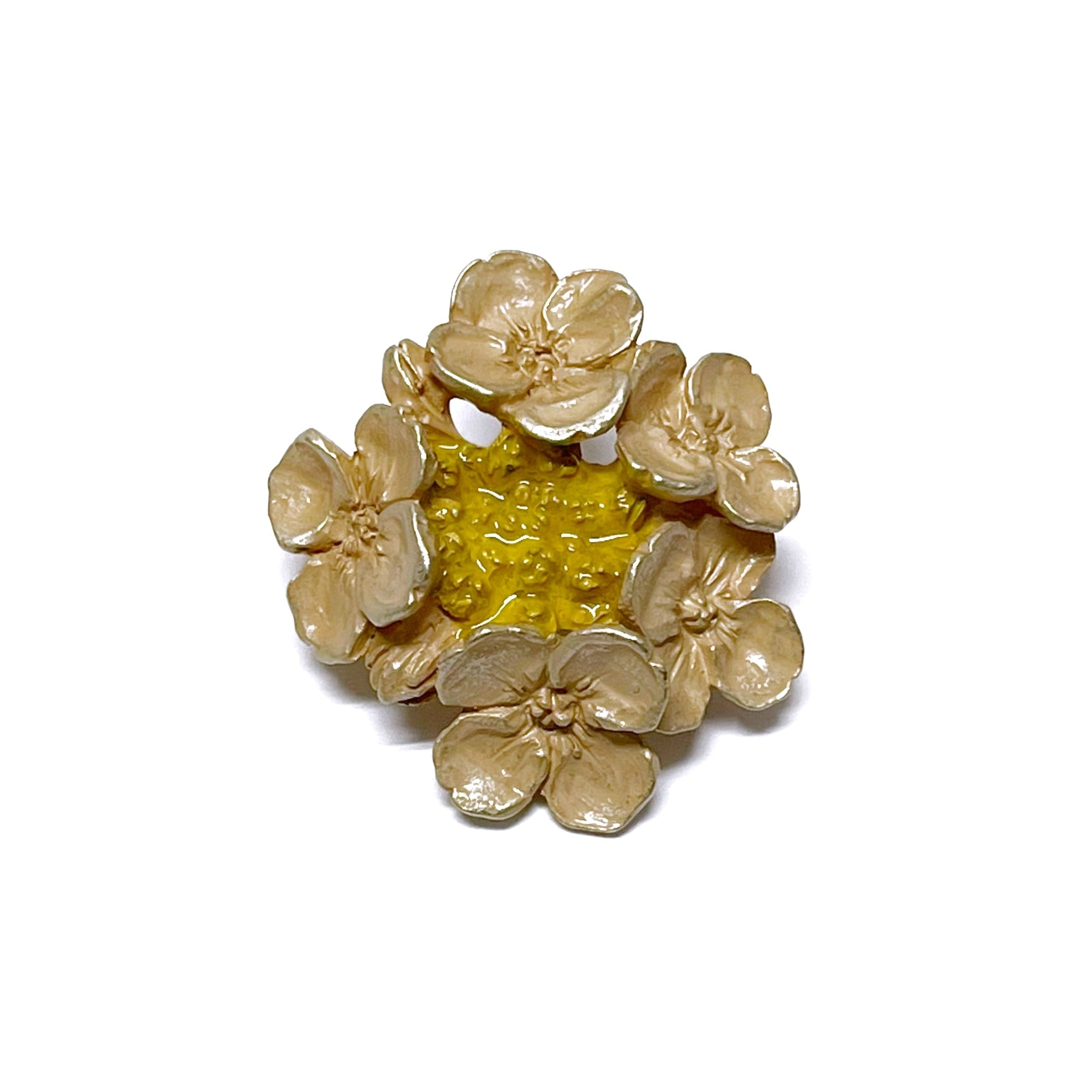 柔らかなピンクベージュとレモンイエローの彩色が施された菜の花モチーフの帯留めです☺︎