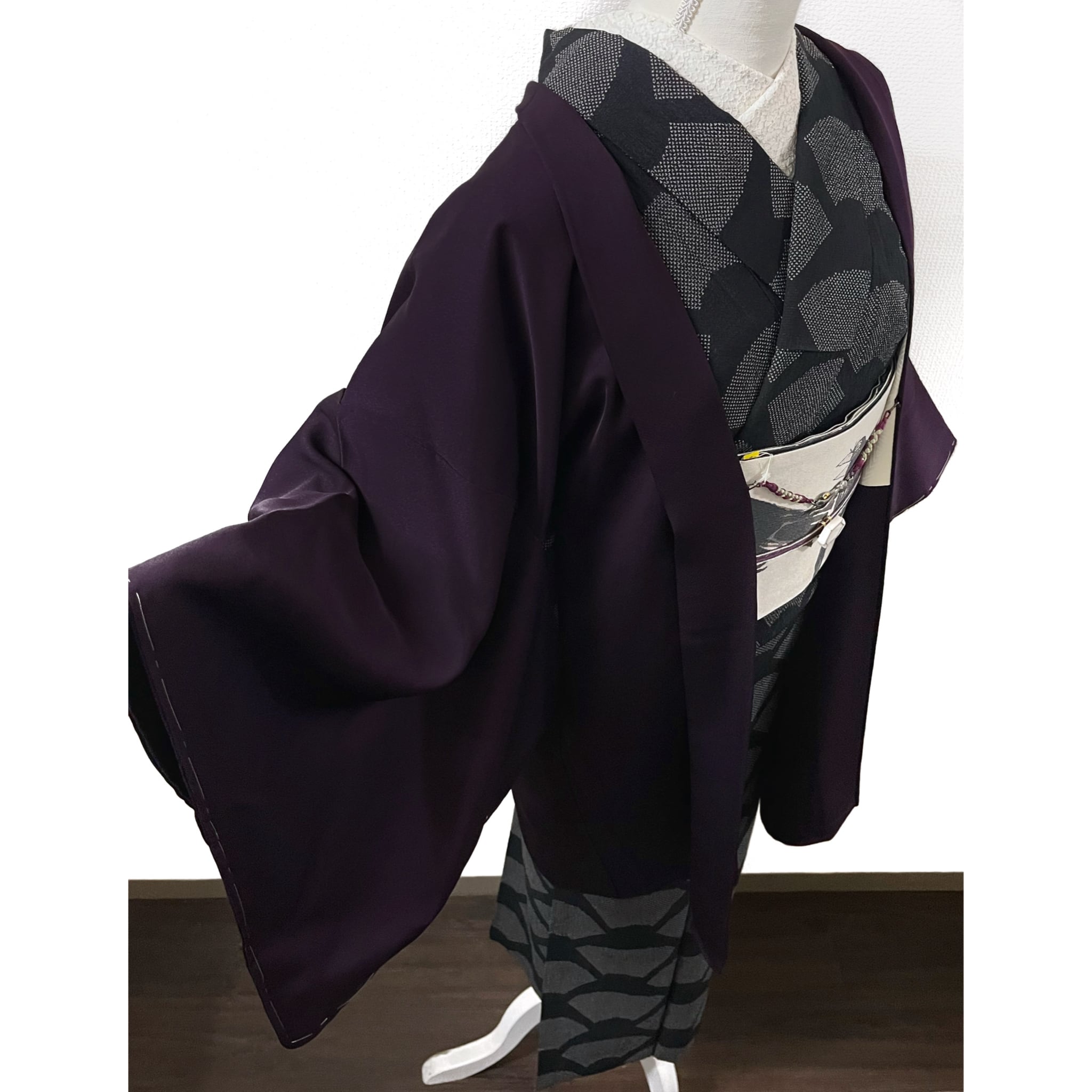 ・色柄説明:二人静色(暗く渋い紅紫色)のしっとりとしたセミマットな地に