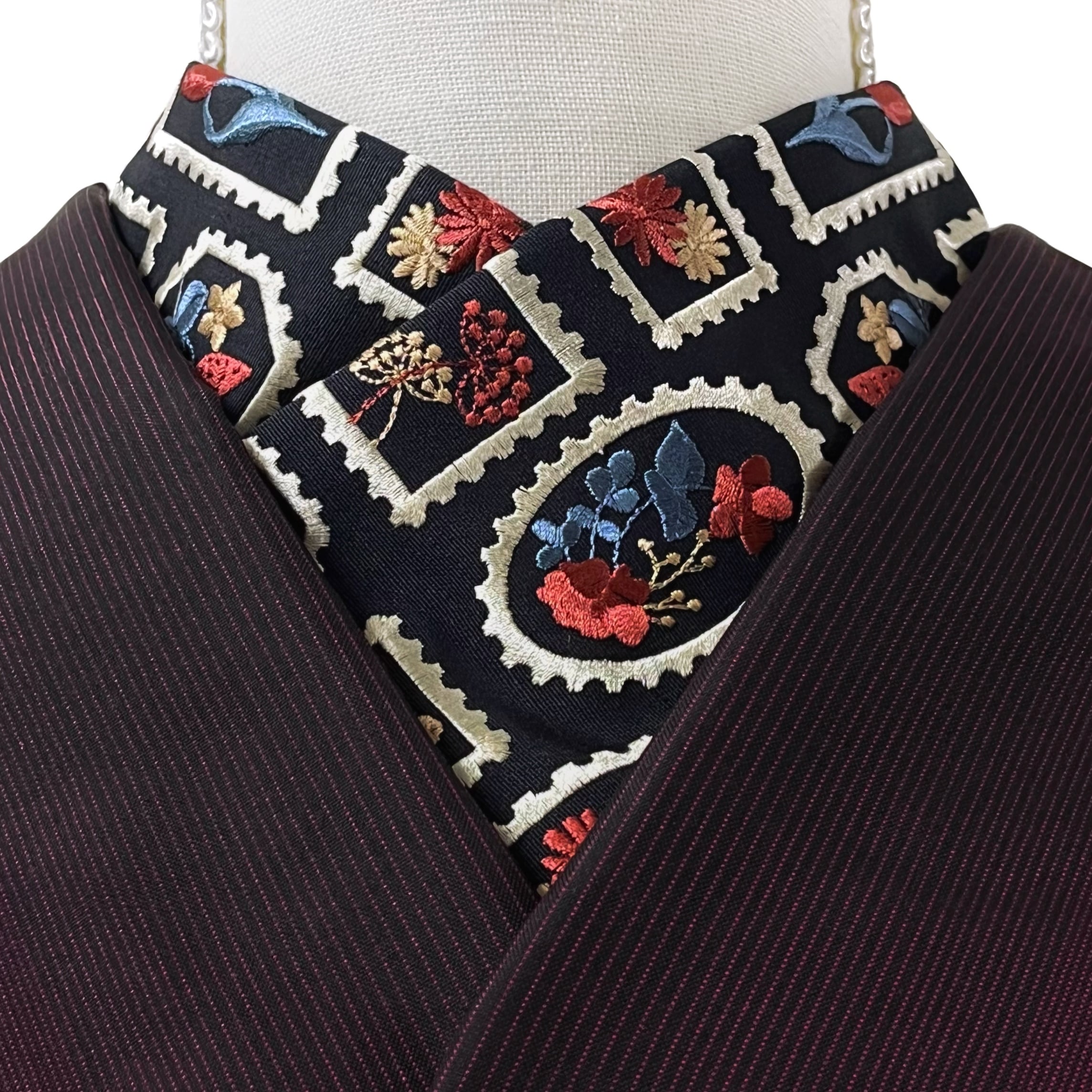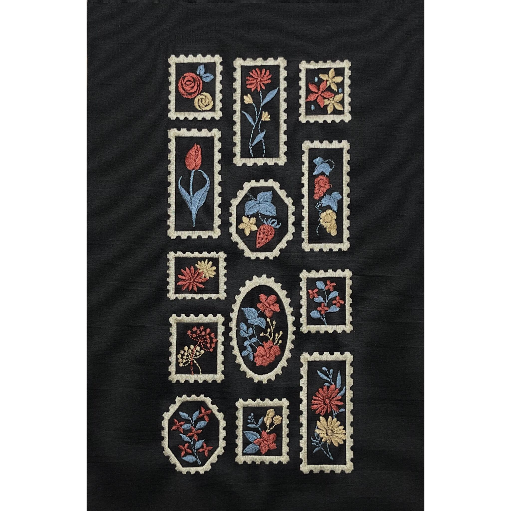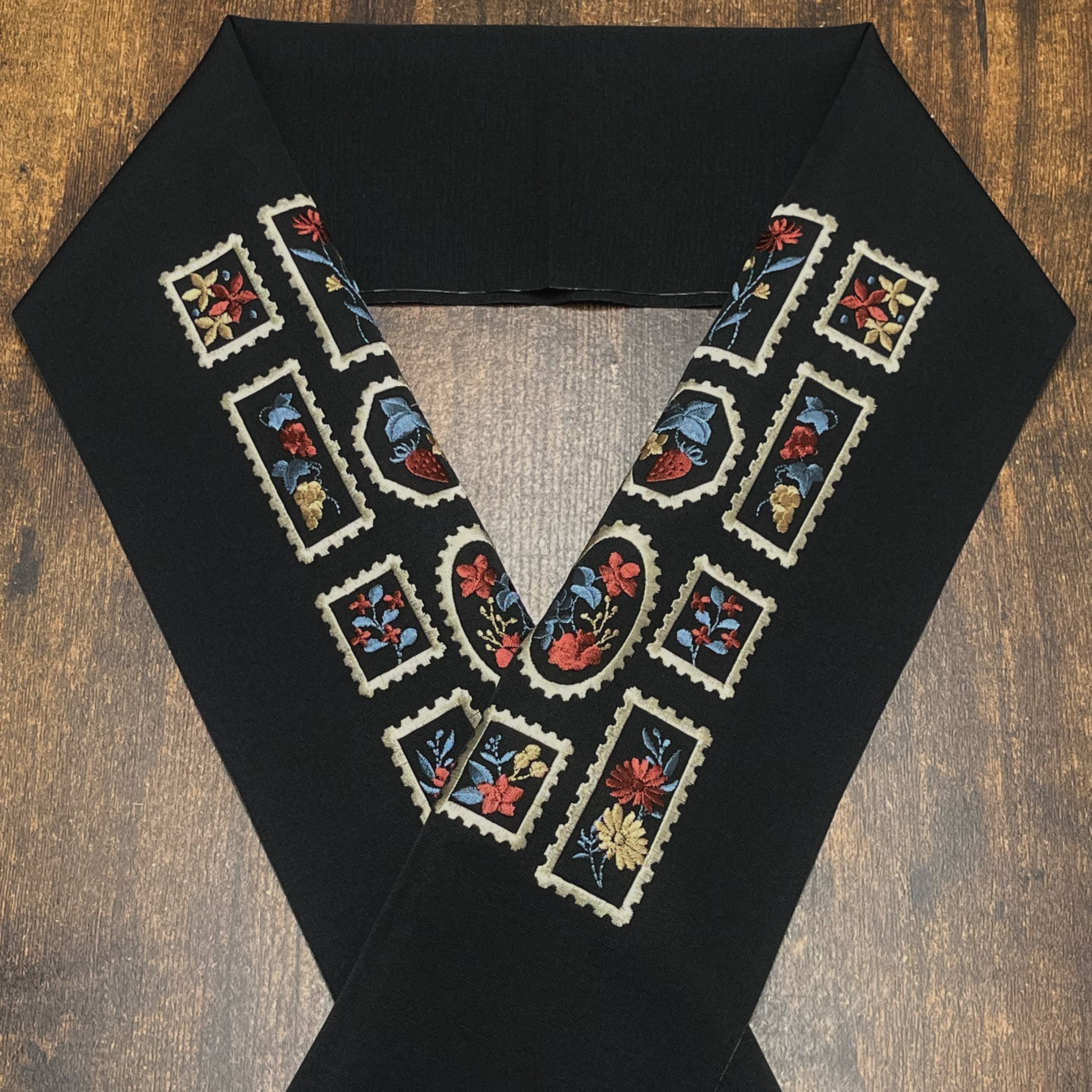 商品名:花柄の切手模様 刺繍半衿(ブラック)