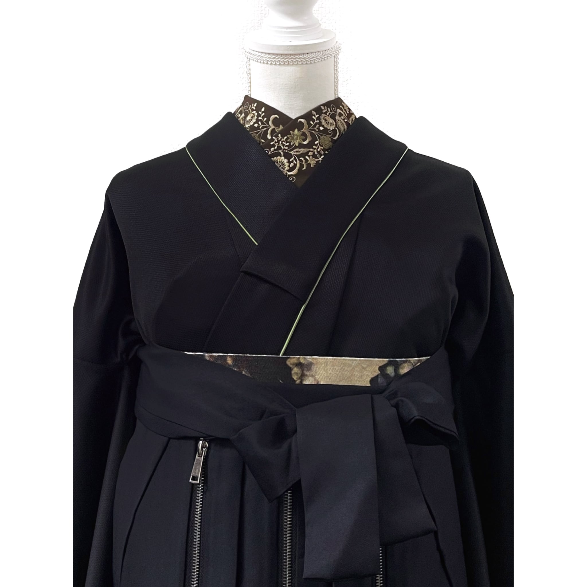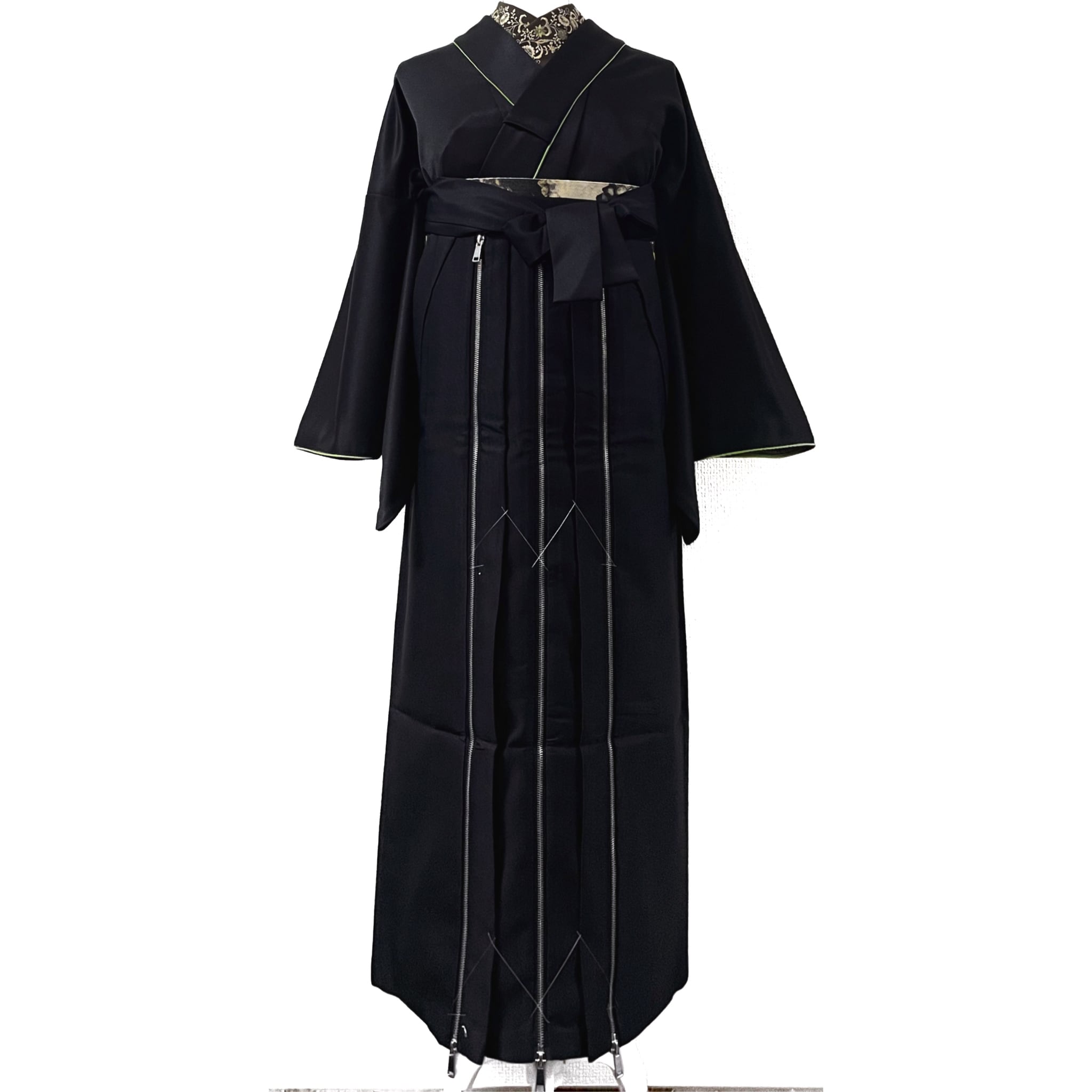 前面のみ落ち着いたゴールドカラーのファスナーが3本デザインされたロックテイストで格好良いお目立ち間違いなしな袴です☺︎