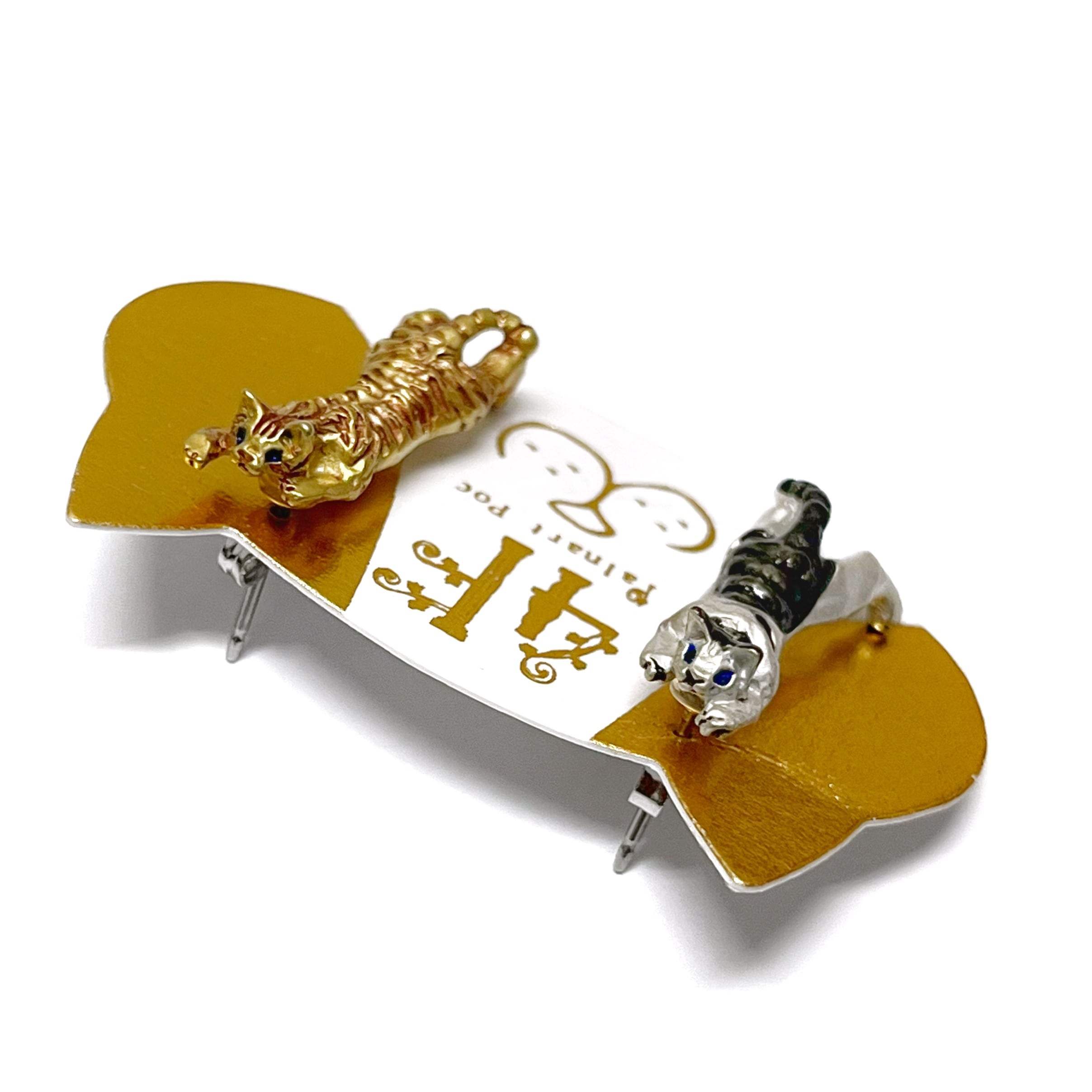 耳元をクライミングするサバ白と茶トラのユニークなピアスです☺︎