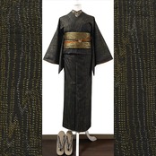 ・商品名:「木目風変わりストライプ模様の十日町紬着物」