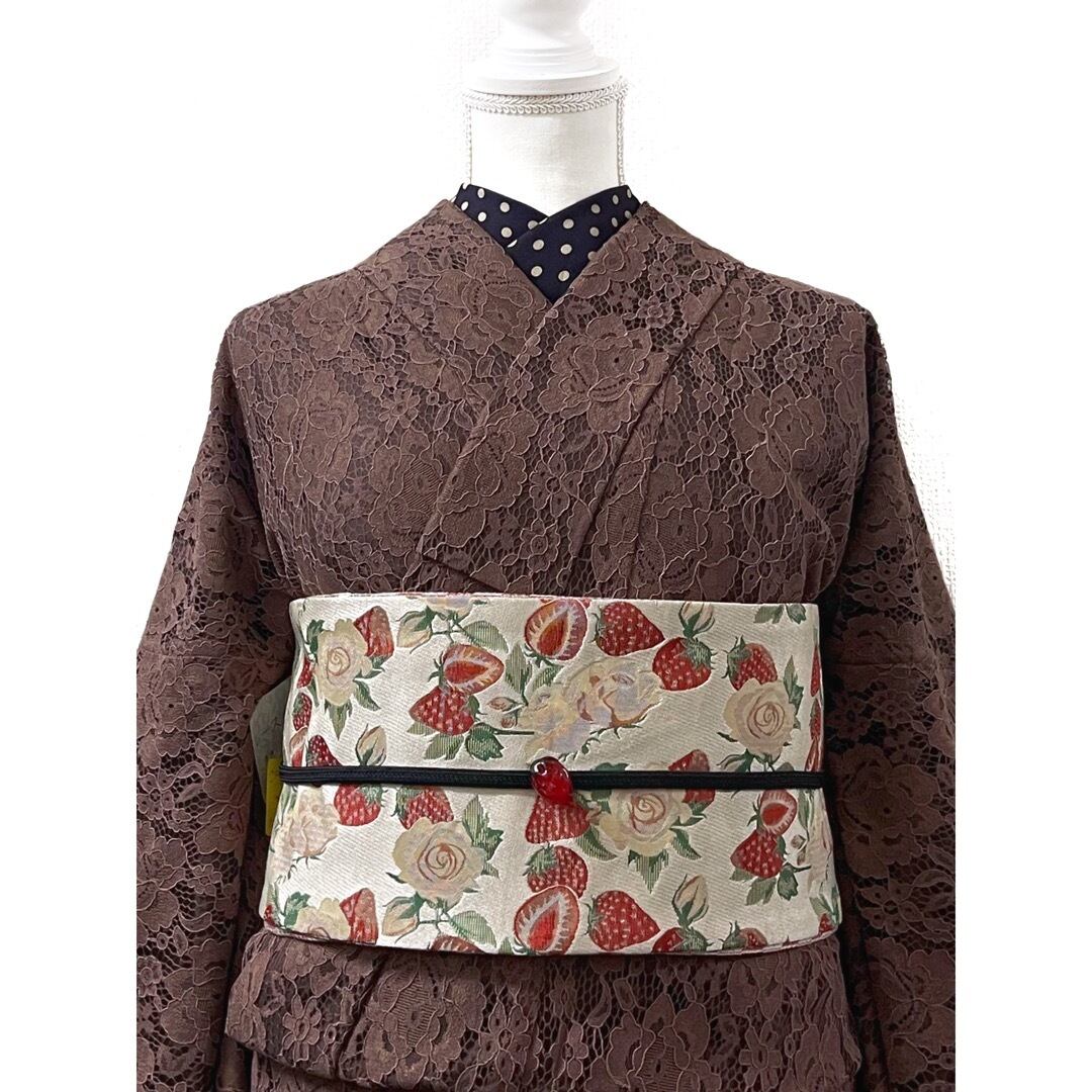 商品名:「おりびと 苺×薔薇模様リバーシブル半幅帯」