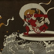 商品名:「おりびと 風神雷神図風リバーシブル半幅帯(ブロンズカラー)」