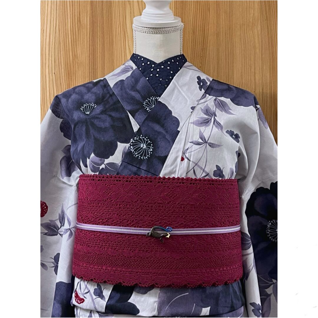 色柄説明:撫松庵さんの浴衣だけでなくカジュアル着物全般に、通年使える総レースの半幅帯です☺︎