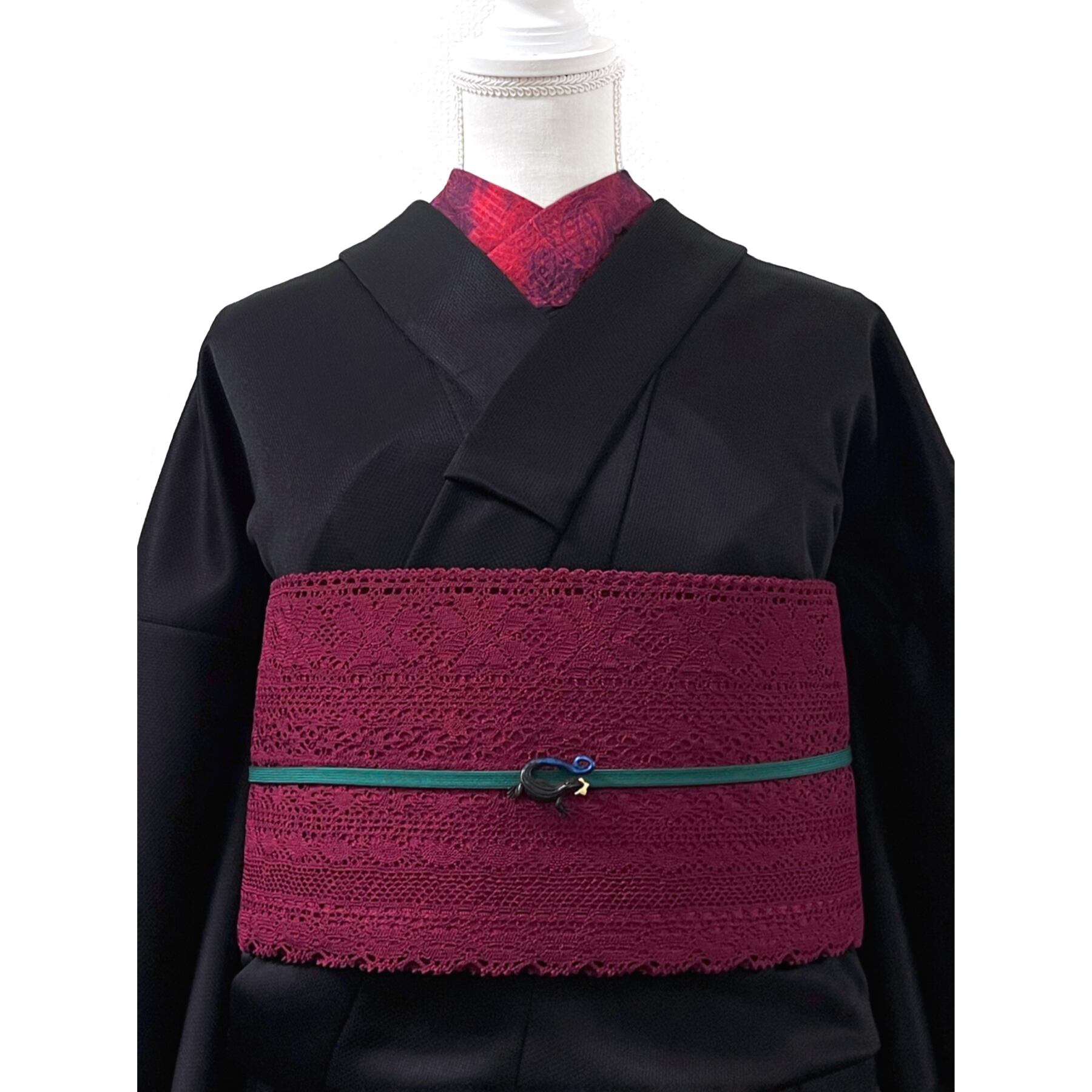 商品名:「撫松庵 総レース半幅帯(マルベリー)」