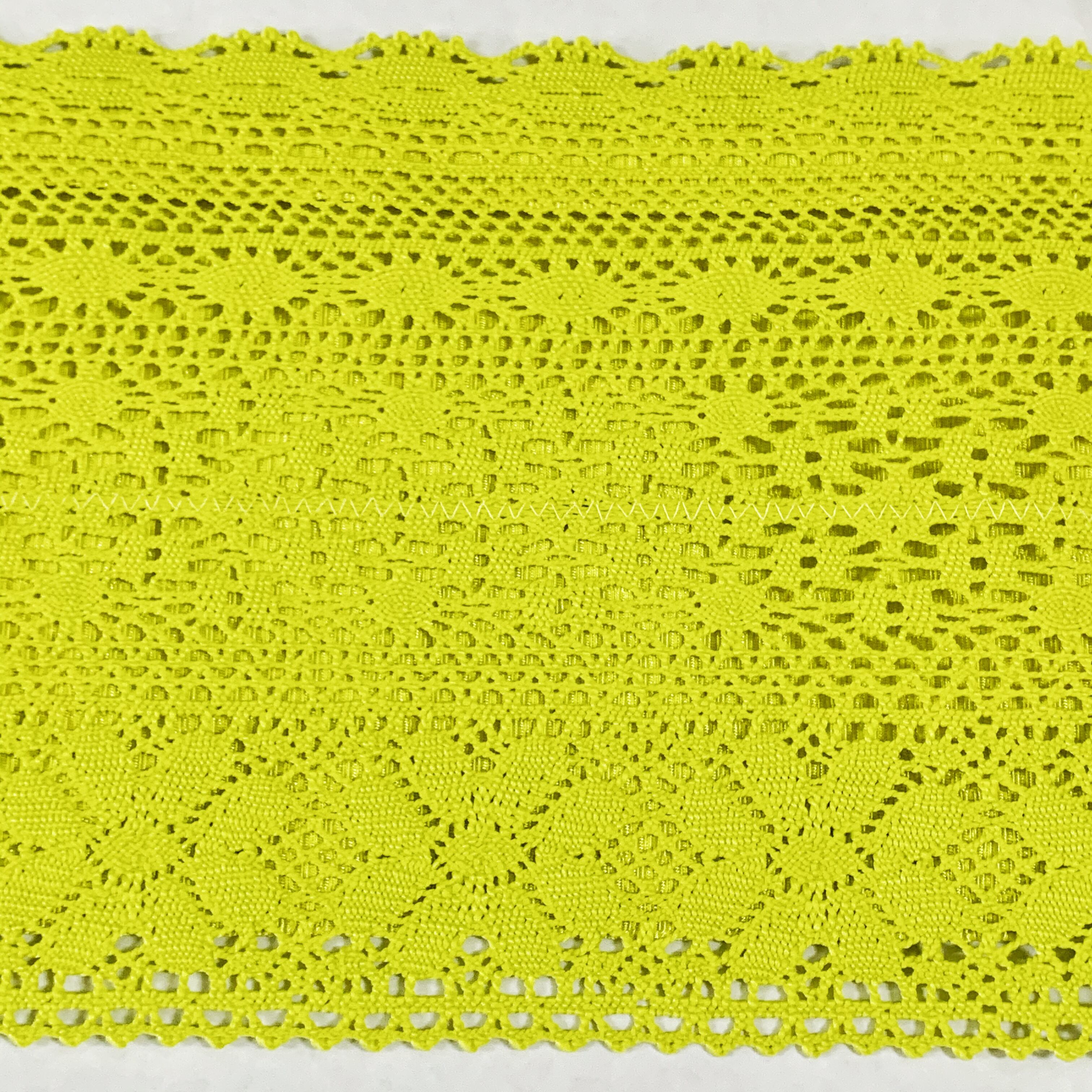 ネオンカラーなライムイエローのレースをたっぷりと使用したモダンな総レースの半幅帯です。