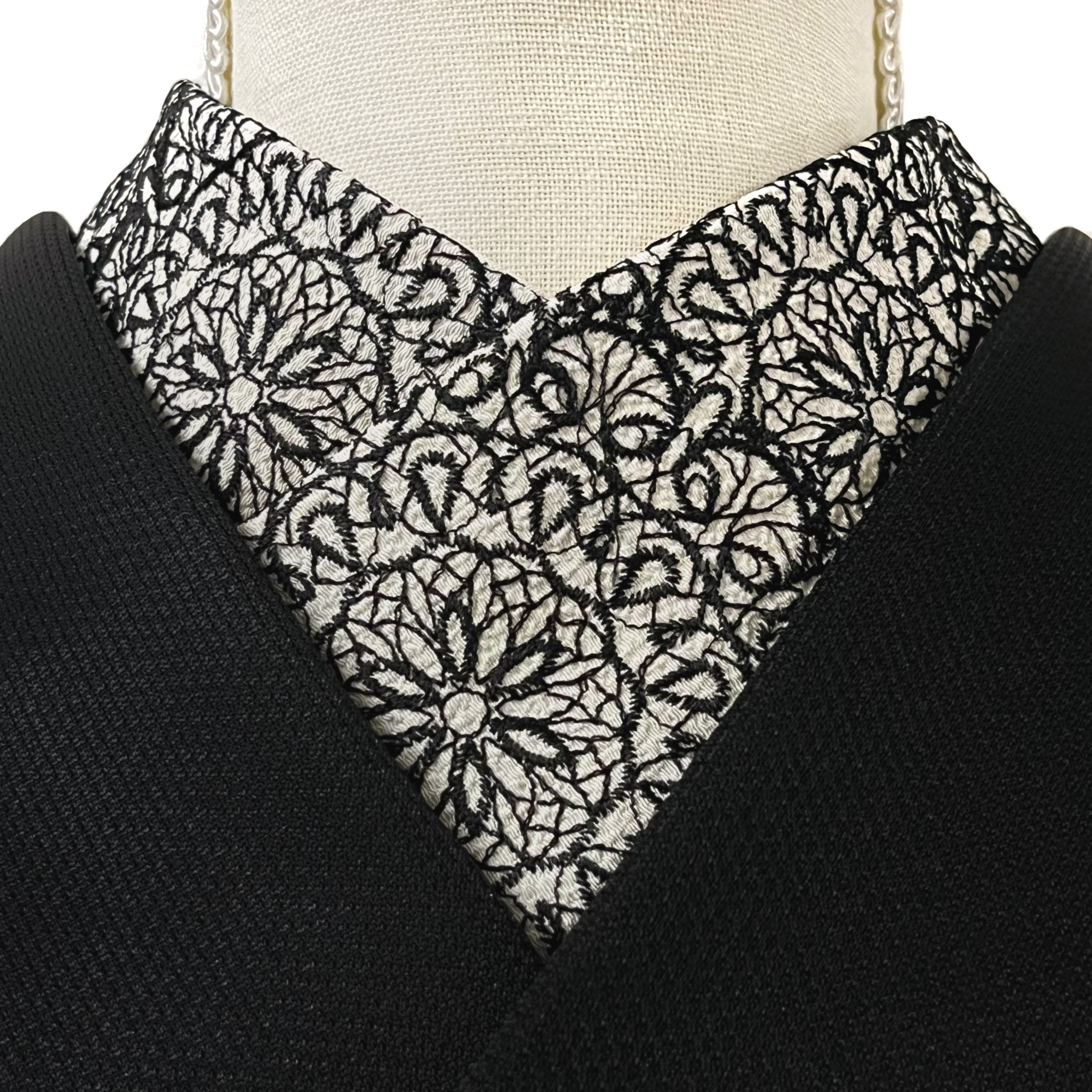 黒色の大きなサークルレース模様が刺繍された