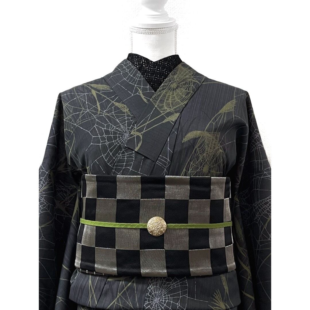 商品名:「おび工房 モノトーンダイヤ模様リバーシブルしじら織半幅帯」
