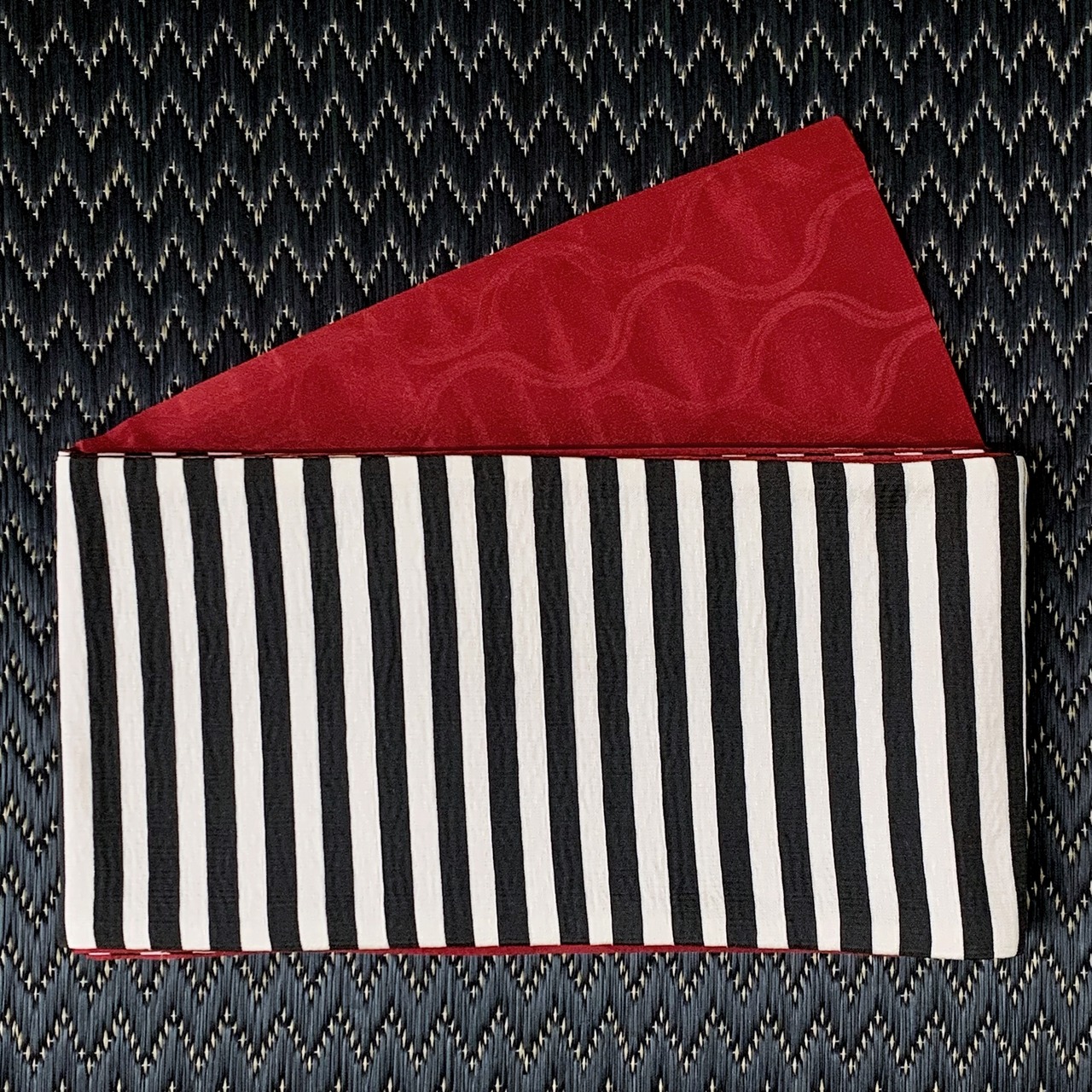 【新品】ふくれ織モノトーンストライプのリバーシブル半幅帯