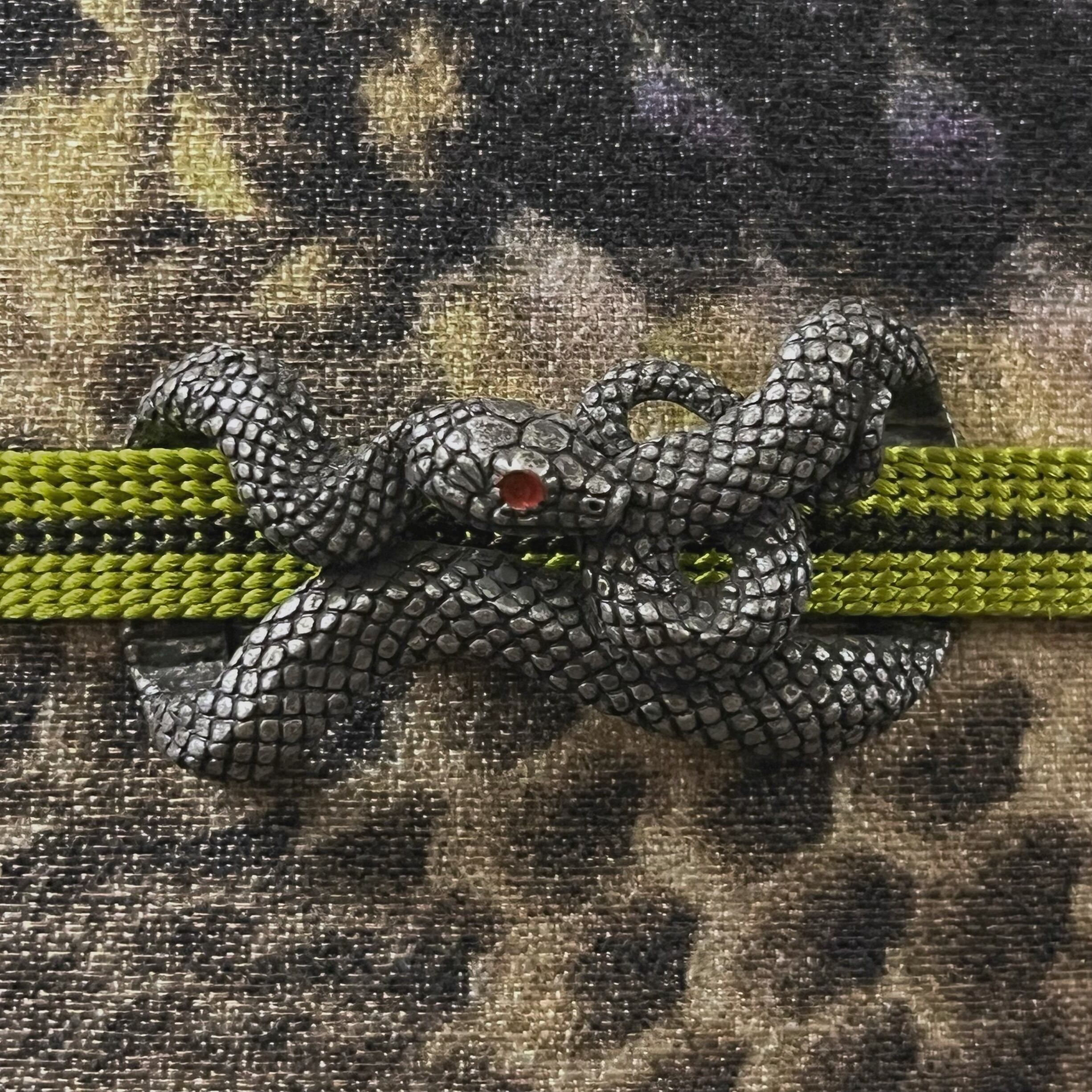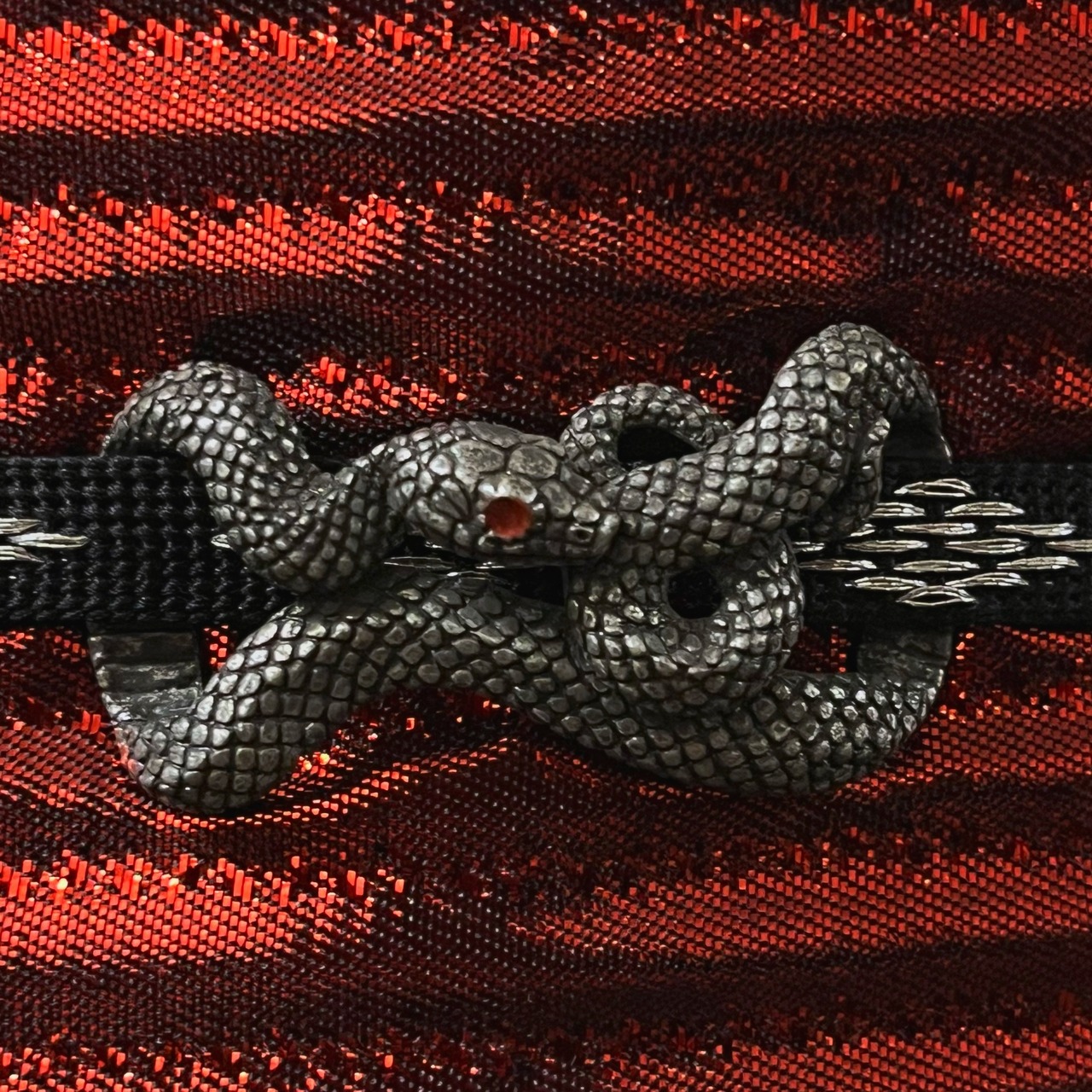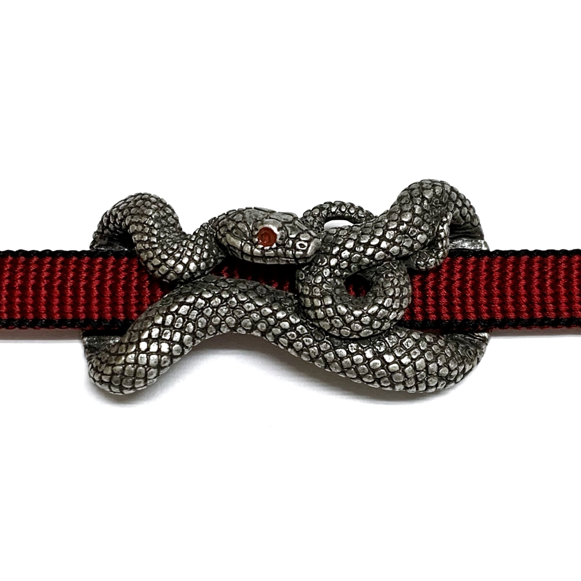 トグロを巻こうとしている赤い瞳の大蛇デザインな帯留めです☺︎