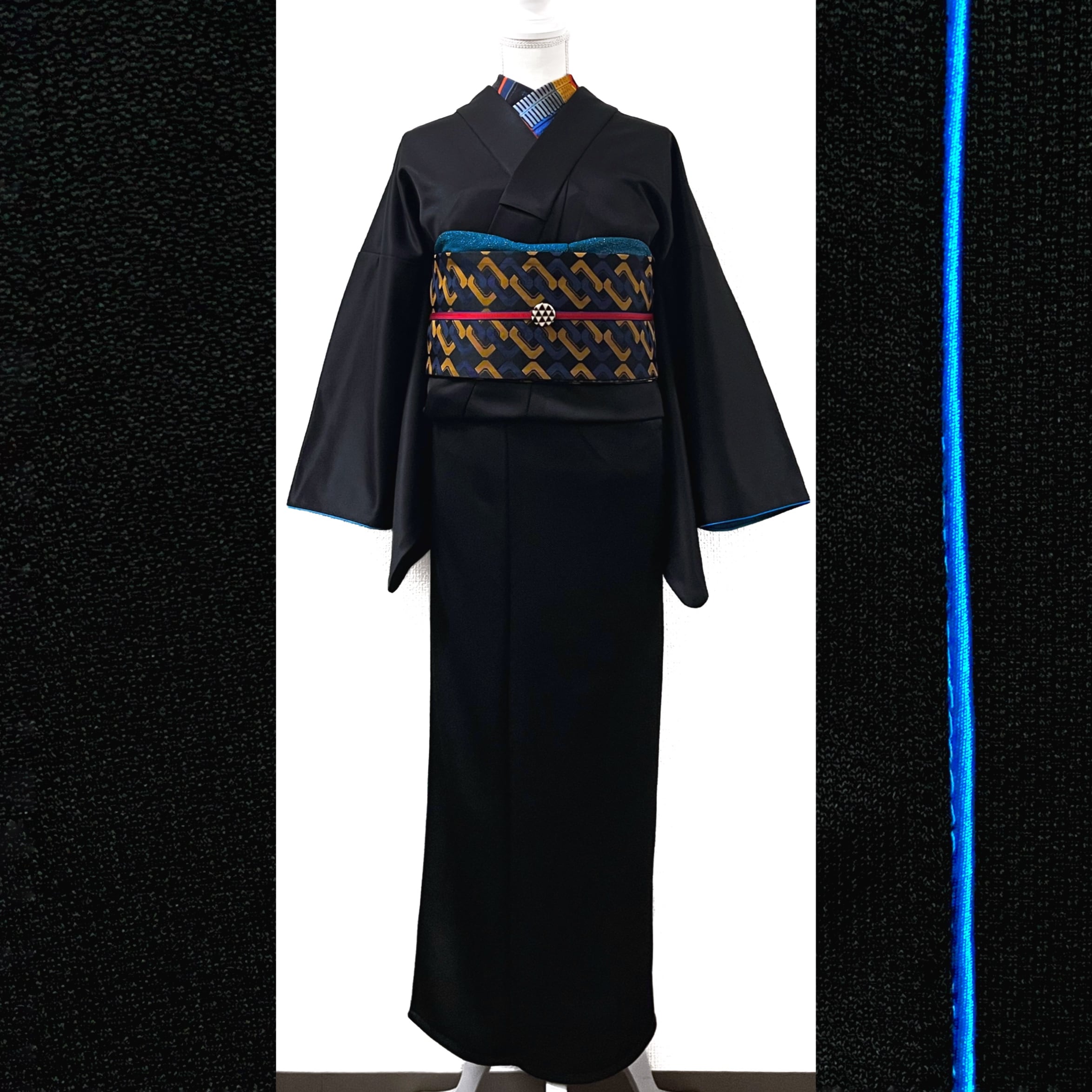 【新品】楸堂オリジナルカスタマイズの黒無地ジャージ着物(ターコイズ)