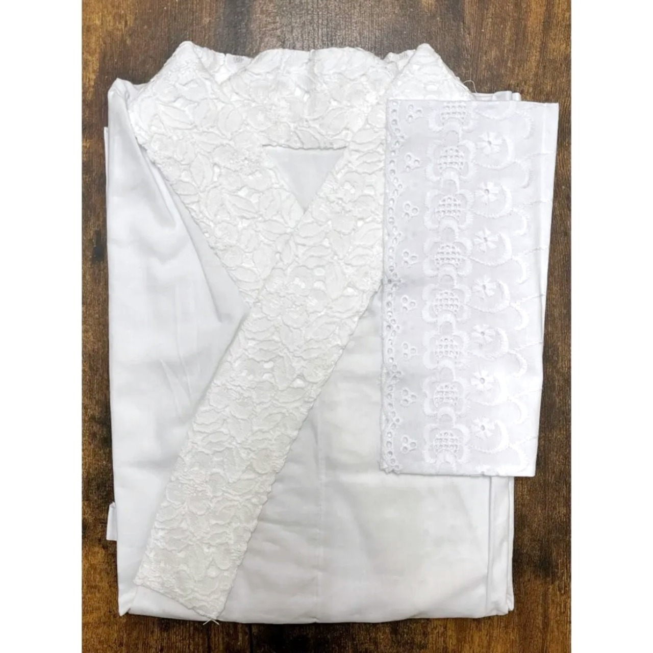 色柄説明:白色の綿100%の半襦袢にミルクホワイト色の、ふっくらと立体的な花柄レース半衿がつけられたふんわりガーリーな一枚です☺︎