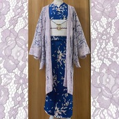 ・色柄説明:大小の花模様を敷き詰めたデザインのややグレイッシュな淡い藤色の総レース羽織です☺︎