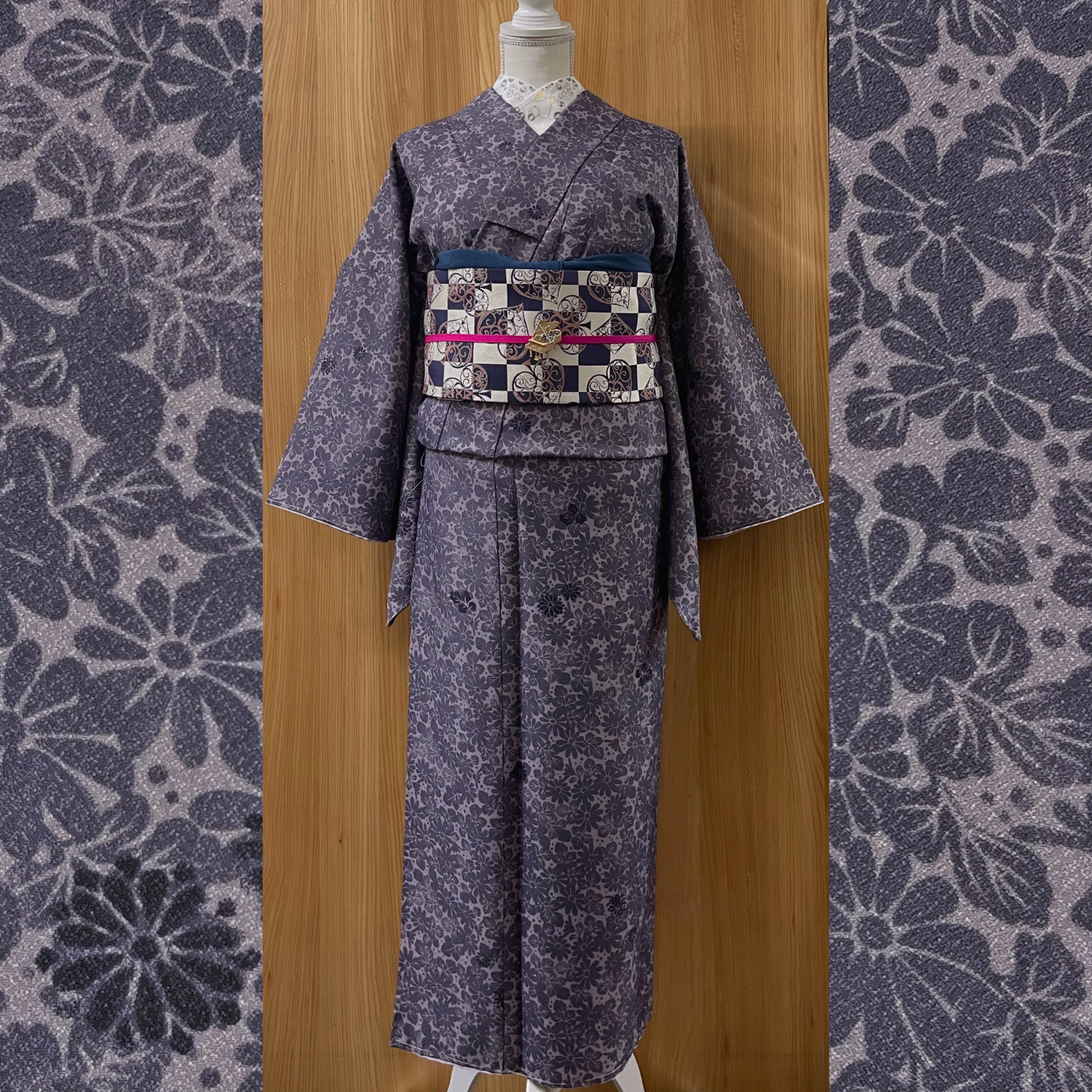・商品名:「スモーキーラベンダーの菊模様洗える小紋着物」