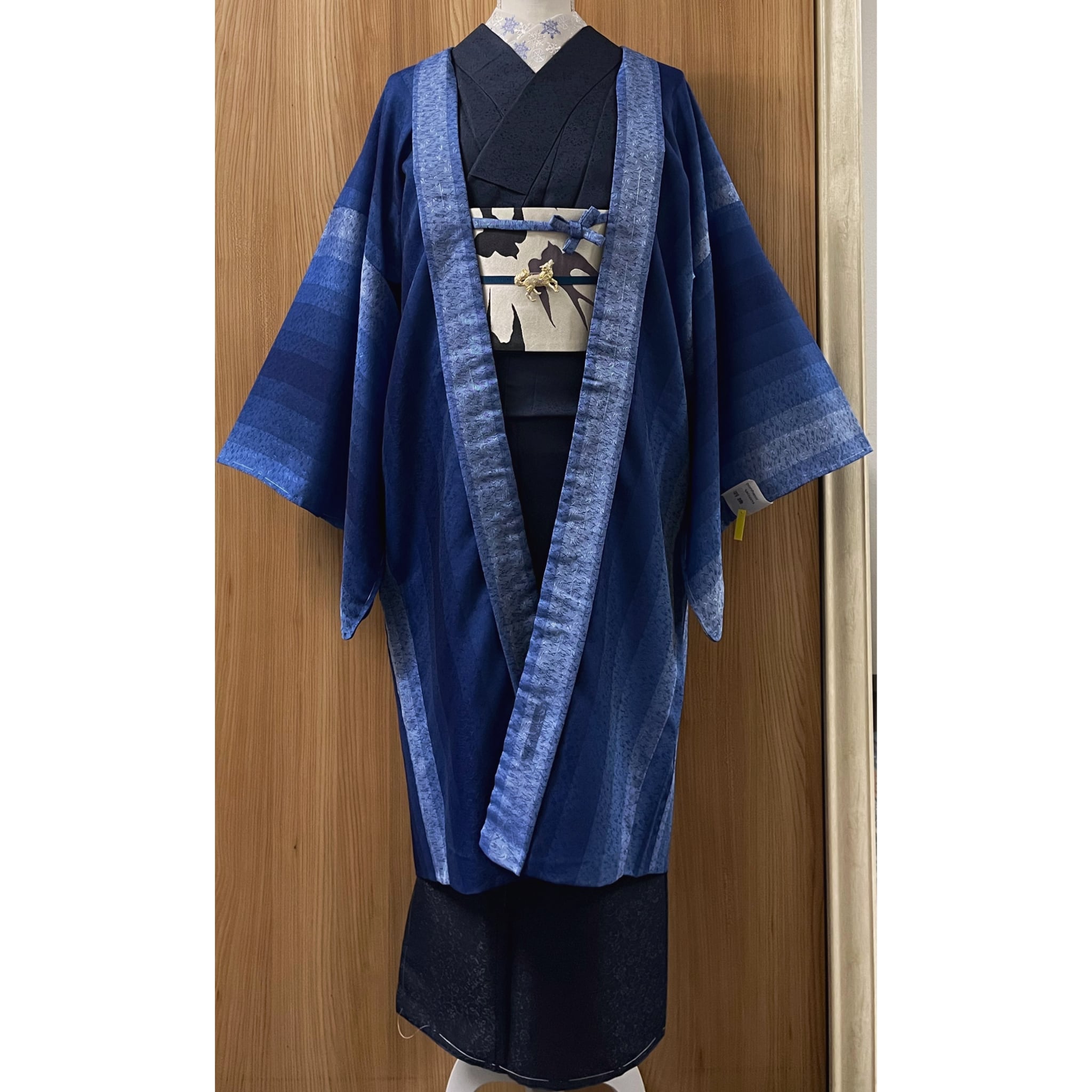・商品名:「新品 ブルーのグラデーションストライプ模様な洗える長羽織り」